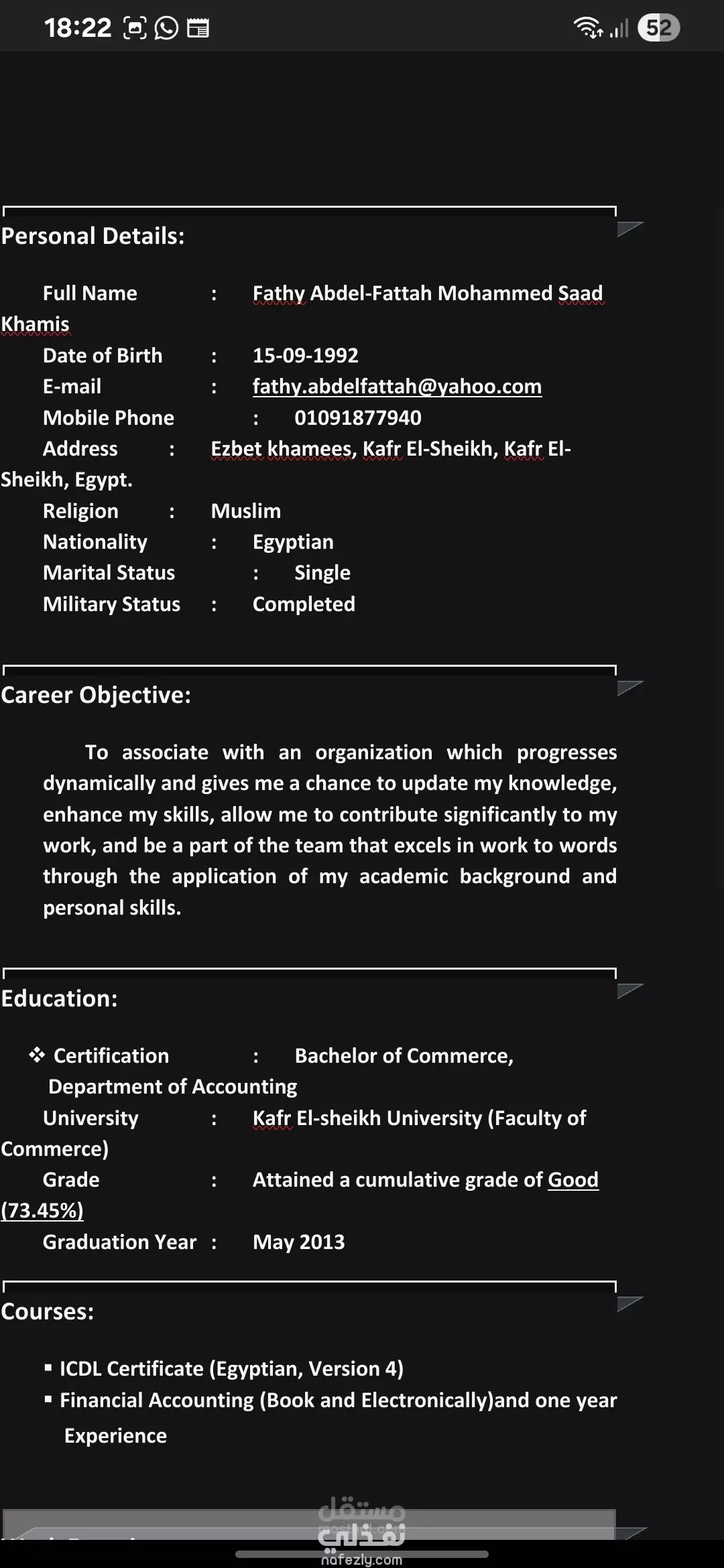 اعداد CV علي الورد