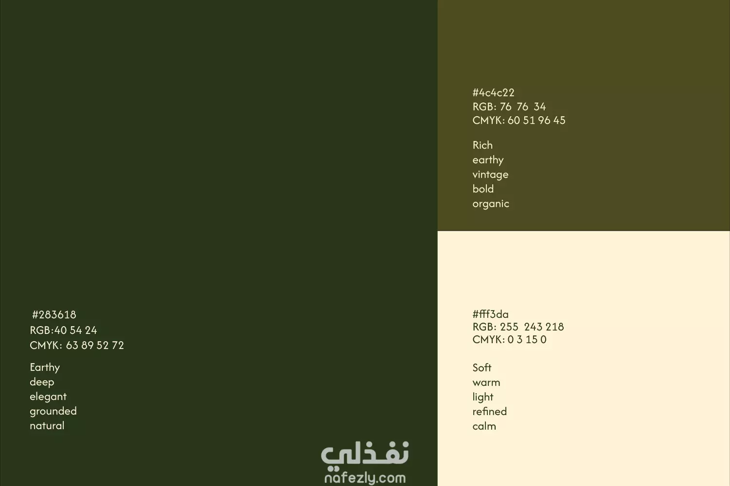 ثم اخترت الالوان المناسبة للبراند التي تبقيها قوية في السوق وتكون مستدامة واخترت الالوان بناء على البيئة التي تعيش فيها الماعز ليكون اقرب للطبيعة