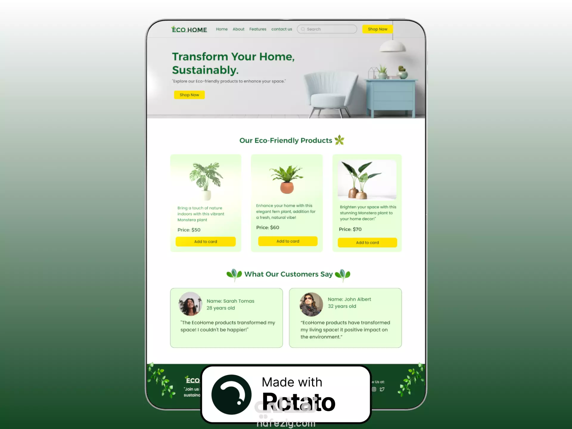 الصفحة تتميز بهوية بصرية طبيعية مستوحاة من الألوان الخضراء والترابية، مع هيكل واضح يعرض المزايا الرئيسية، أقسام منتجات وخدمات، نموذج تواصل لجمع العملاء المحتملين، وعناصر تفاعلية تجعل التصفح سلس على جميع الأجهزة.