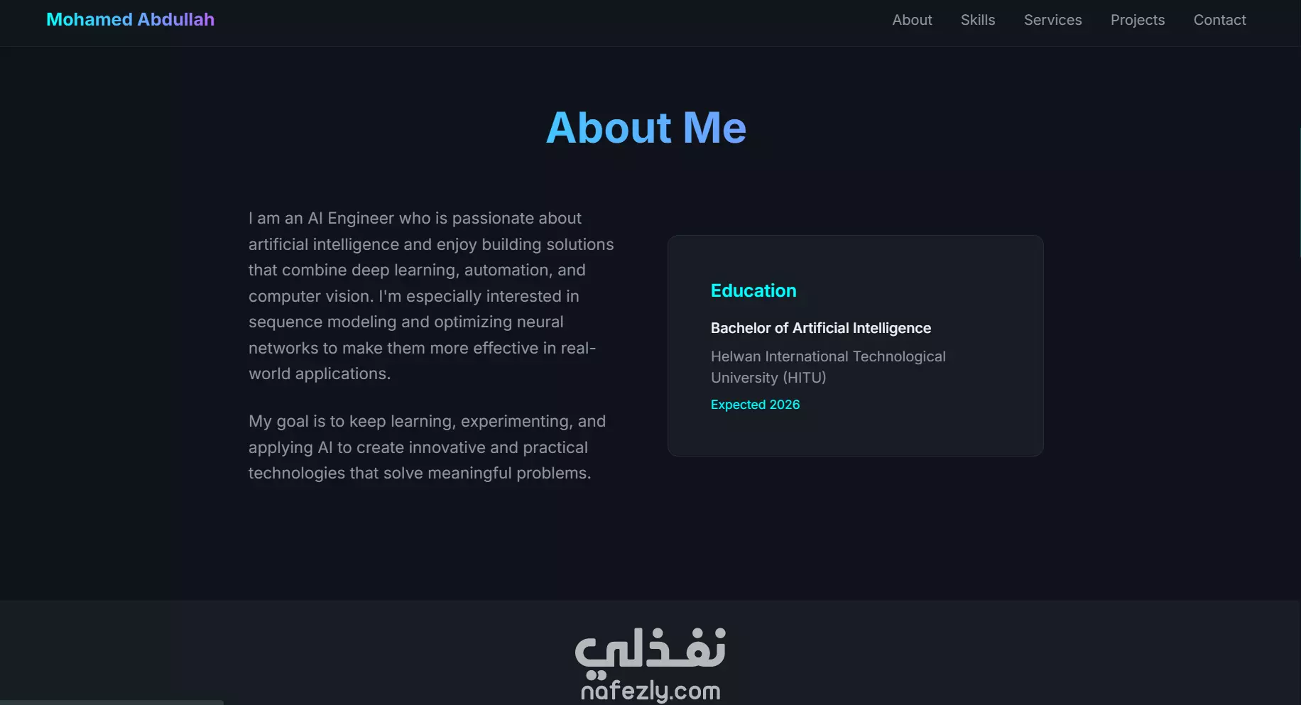 سأقوم بتطوير موقع شخصي (Portfolio) احترافي باستخدام HTML, CSS, وJavaScript، يعرض أعمالك ومهاراتك بطريقة جذابة ومتجاوبة مع جميع الأجهزة. يمكنني أيضًا دمج عناصر ذكية مثل نماذج التواصل، تأثيرات تفاعلية، وربط الموقع بمنصات خارجية مثل GitHub أو LinkedIn.