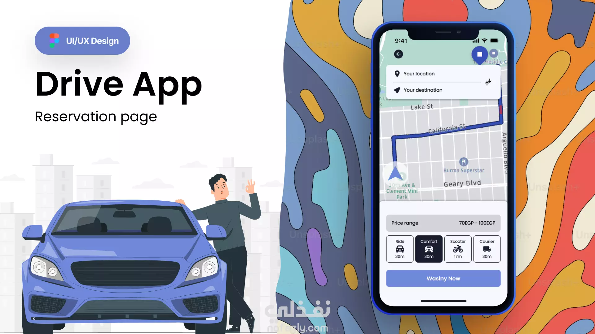 UI/UX design using Figma to create a simplified booking screen for a ride-booking app