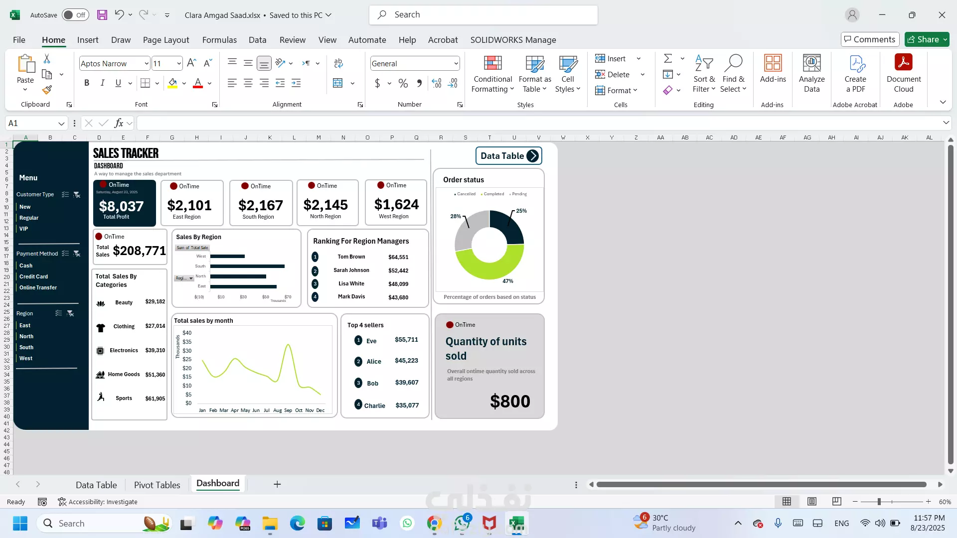 توفر هذه اللوحة رؤية شاملة تساعد الإدارة على تتبع تقدم المبيعات وتحسين الخطط التسويقية وتعزيز كفاءة فرق المبيعات.