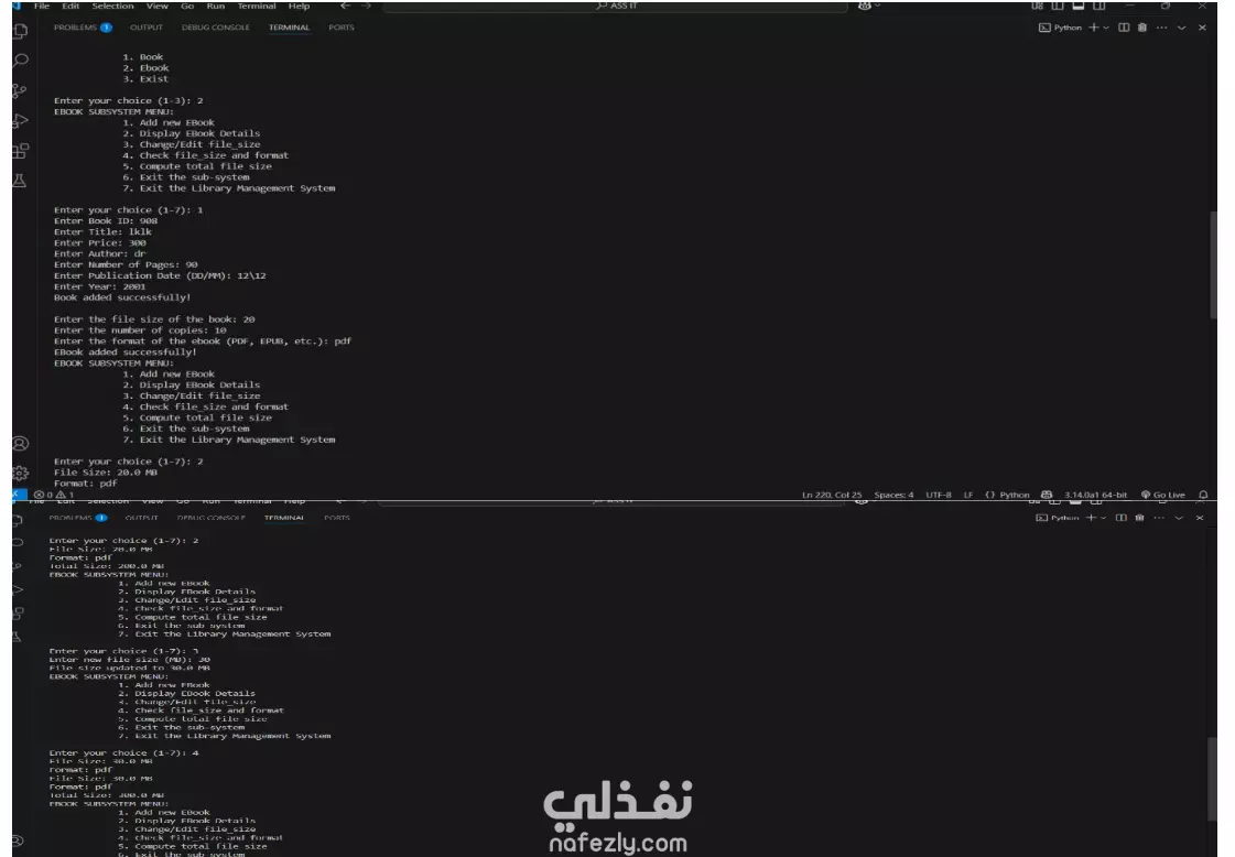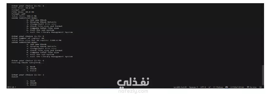 طورت تطبيقًا مكتبيًا متكاملًا يجمع بين نظام إدارة مكتبة و حاسبة قروض السيارات. يعتمد نظام المكتبة على مبادئ البرمجة كائنية التوجه (OOP) مع تطبيق الوراثة بين الكتب الورقية والكتب الإلكترونية، بينما توفر حاسبة القروض واجهة رسومية لحساب دفعات قروض السيارات مع خاصية التحقق من صحة المدخلات وتقديم ملاحظات للمستخدم.