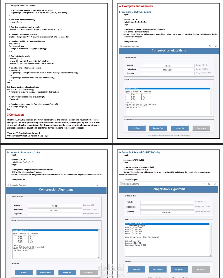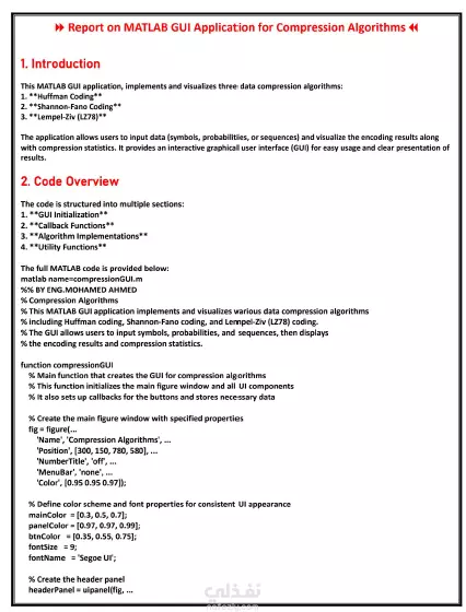قمت بتصميم وتنفيذ مشروع كامل في MATLAB لتطبيق ودراسة خوارزميات ضغط البيانات الأشهر: