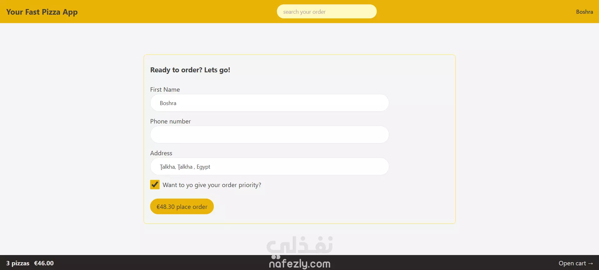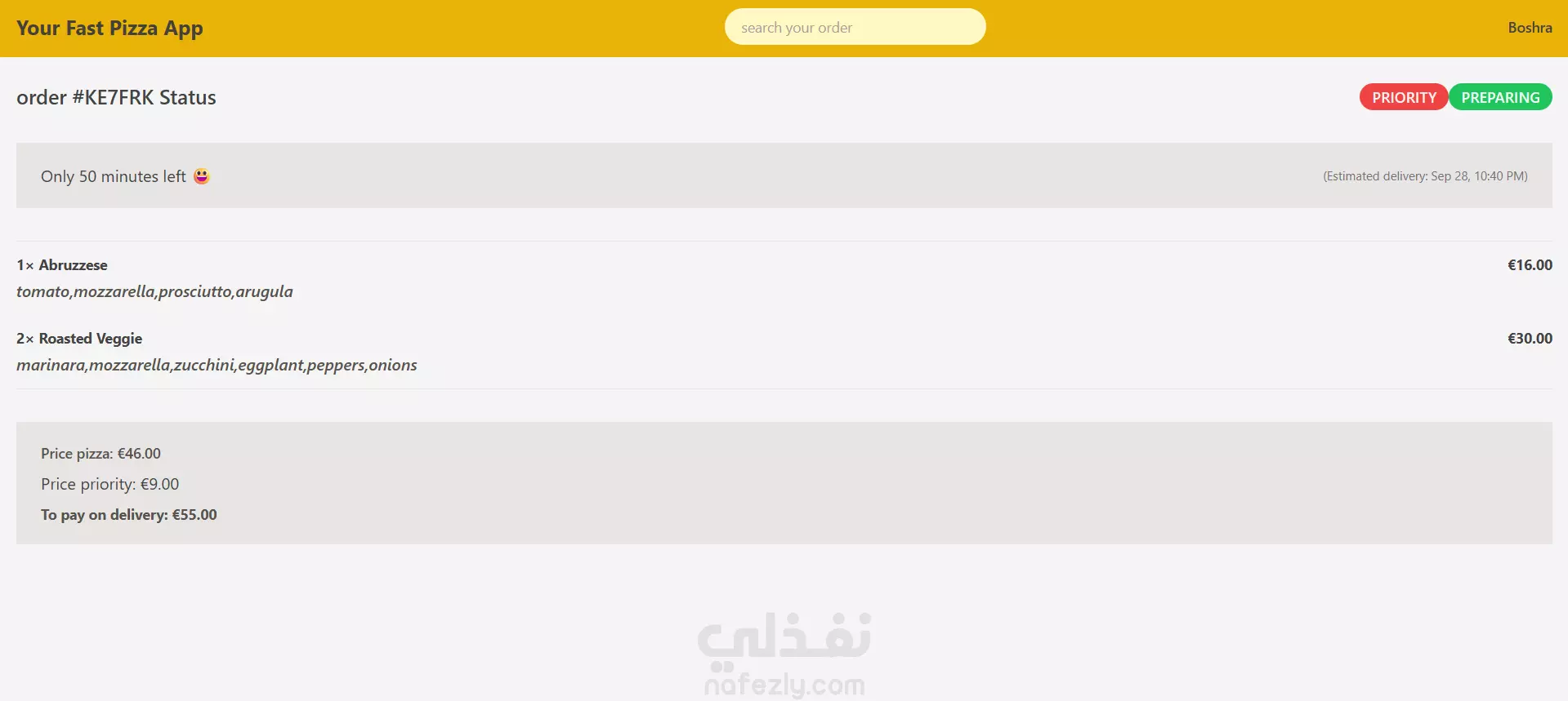 موقع توصيل بيتزا سلس و سريع