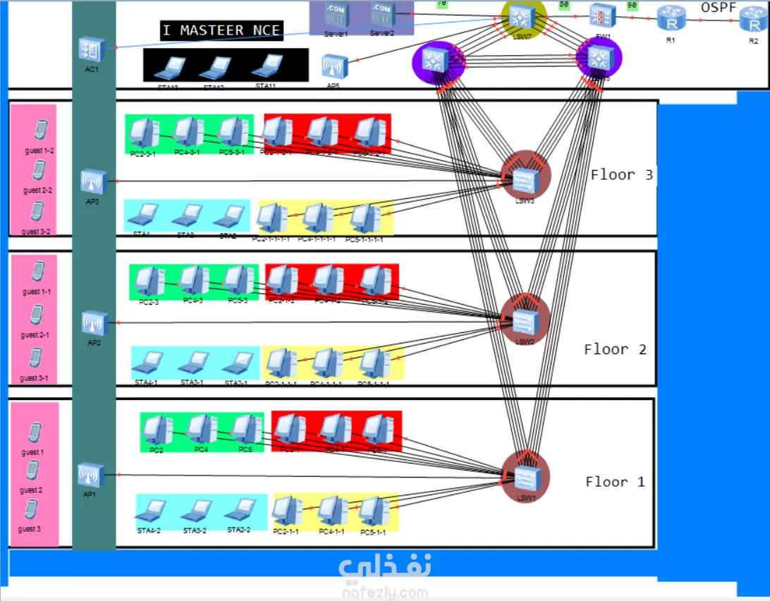 تصميم وتطبيق شبكة تخيلية لشركة مكونة من ثلاثة ادوار و ربطها بمزود الخدمة