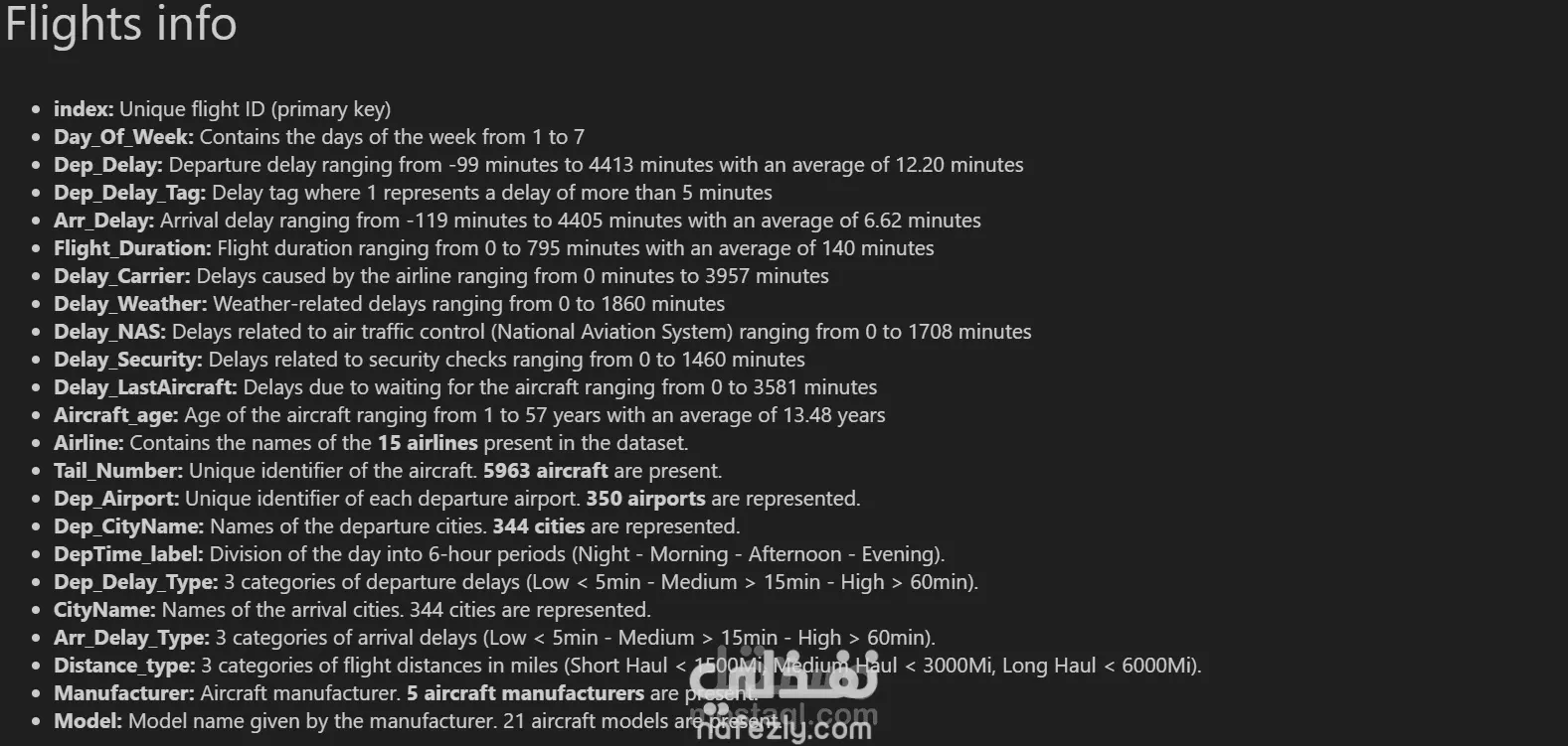 استخراج مؤشرات مهمة مثل: أكثر شركات الطيران التزامًا بالمواعيد، أشهر المطارات ازدحامًا، وأوقات الذروة في السفر.