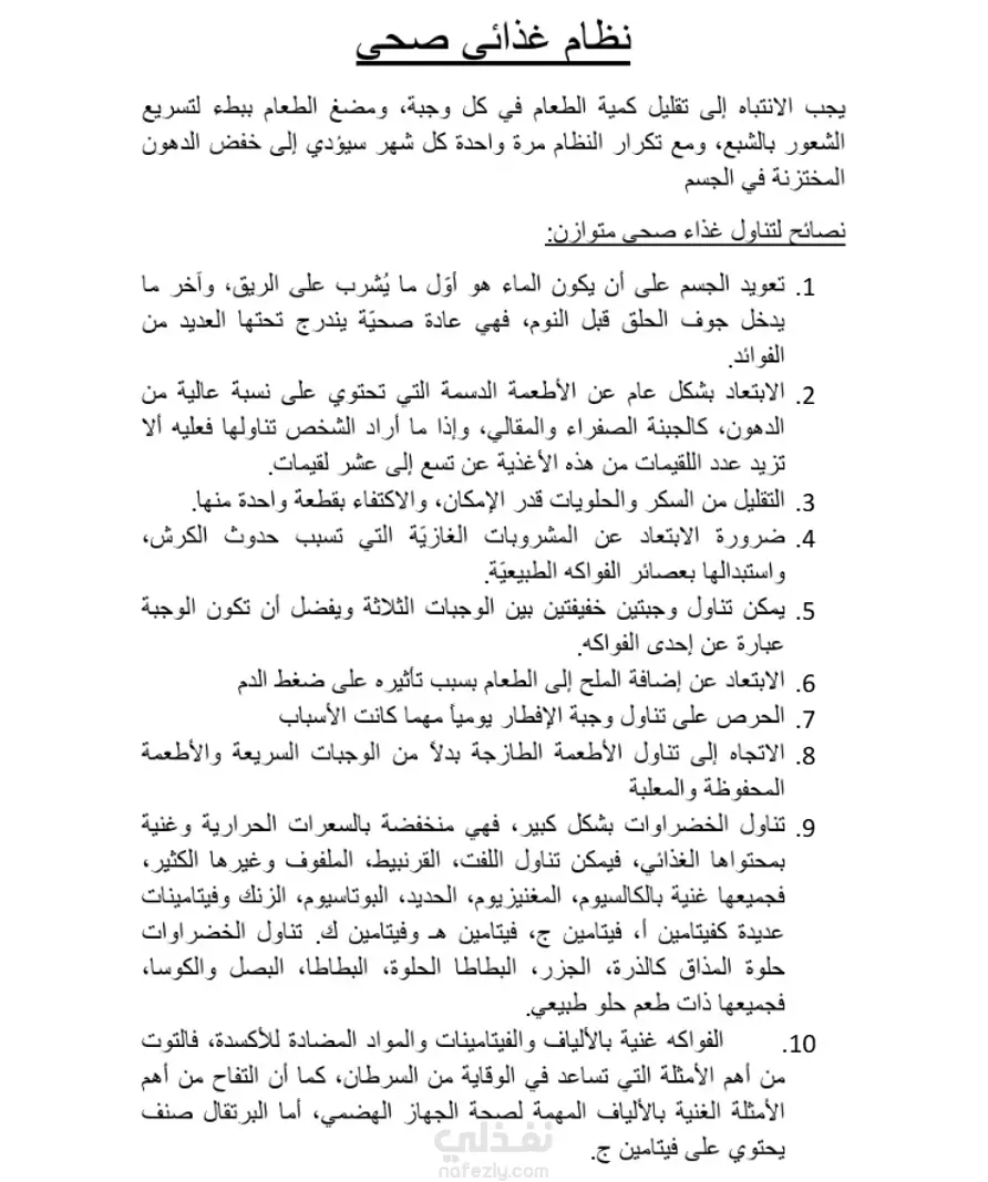 سأعد لك خطة غذائية أسبوعية مصممة خصيصًا لك تساعدك على خسارة الوزن بطريقة صحية وآمنة، وتشمل: خطة مكتوبة ومنظمة في ملف PDF. جدول وجبات يومية مع بدائل للأطعمة المتاحة. نصائح عملية لتحفيزك وزيادة معدل الحرق. الخدمة الأساسية خطة غذائية أسبوعية مع نصائح عامة. ما الذي ستستلمه: ملف PDF يحتوي على خطتك الغذائية. جدول مقترح للوجبات اليومية. نصائح لتحفيزك على الاستمرار.