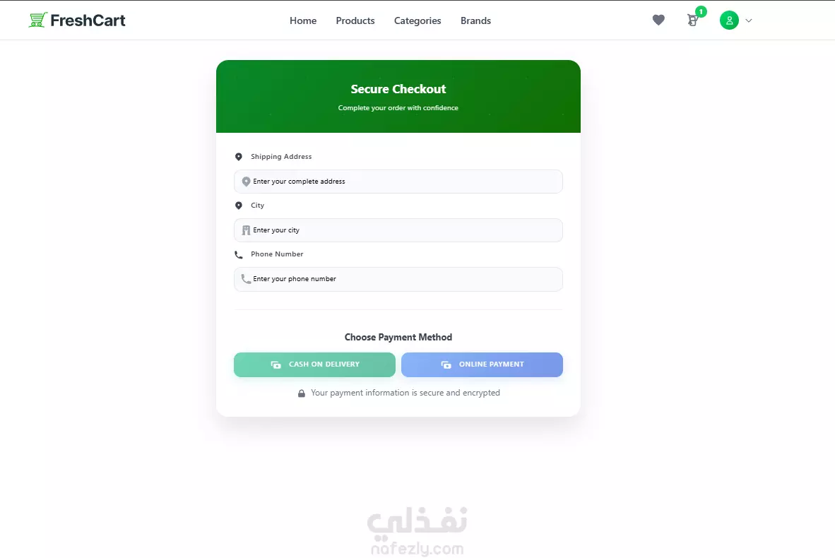 بوابة دفع إلكترونية مدمجة باستخدام Stripe لدعم الدفع بالفيزا الماستر كارد.