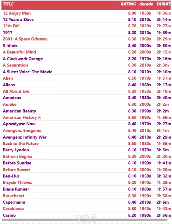 قمت بتحليل بيانات أفضل 250 فيلم على موقع IMDb بهدف استكشاف الأنماط بين تقييمات المشاهدين، سنوات الإصدار، وأنواع الأفلام.