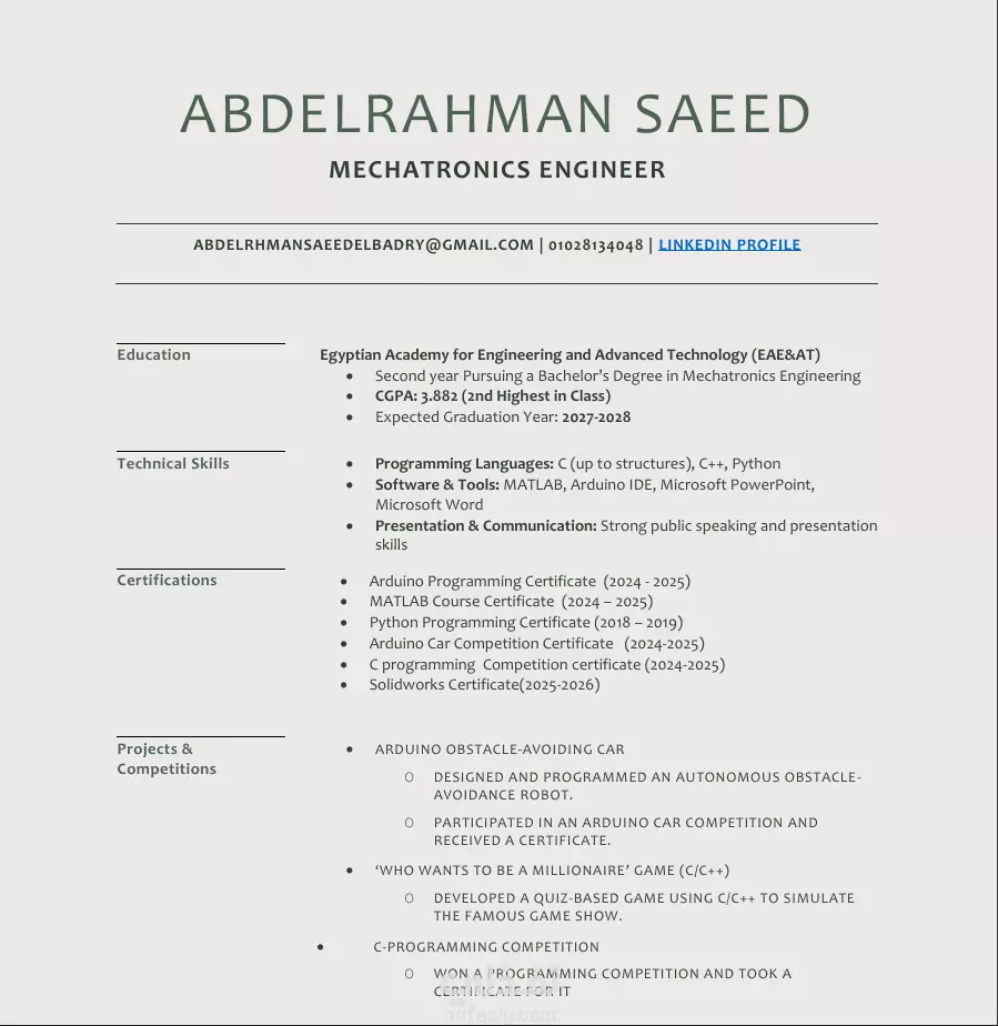 بعمل cv لاي تخصص يعدي علي ال ATS
