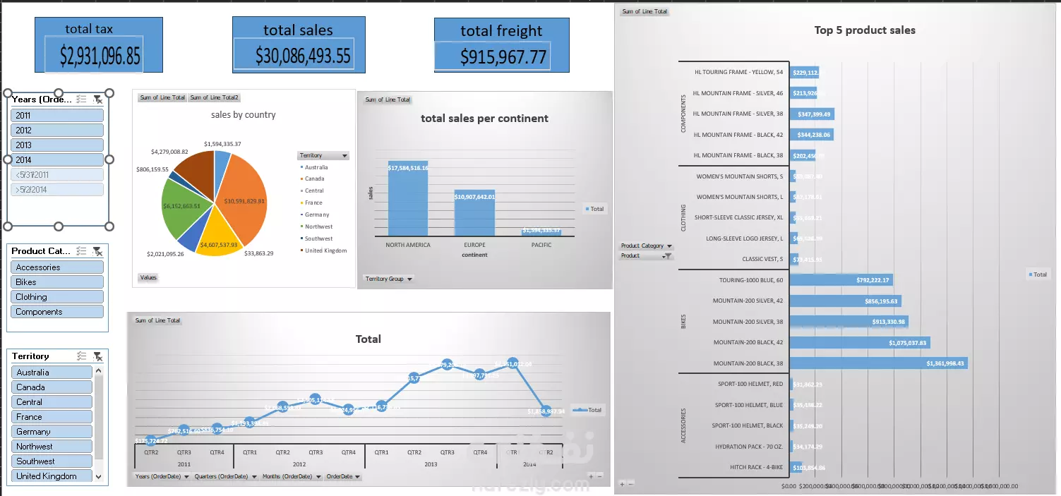 dashboard لتحليل بيانات مبيعات باستخدام Excel