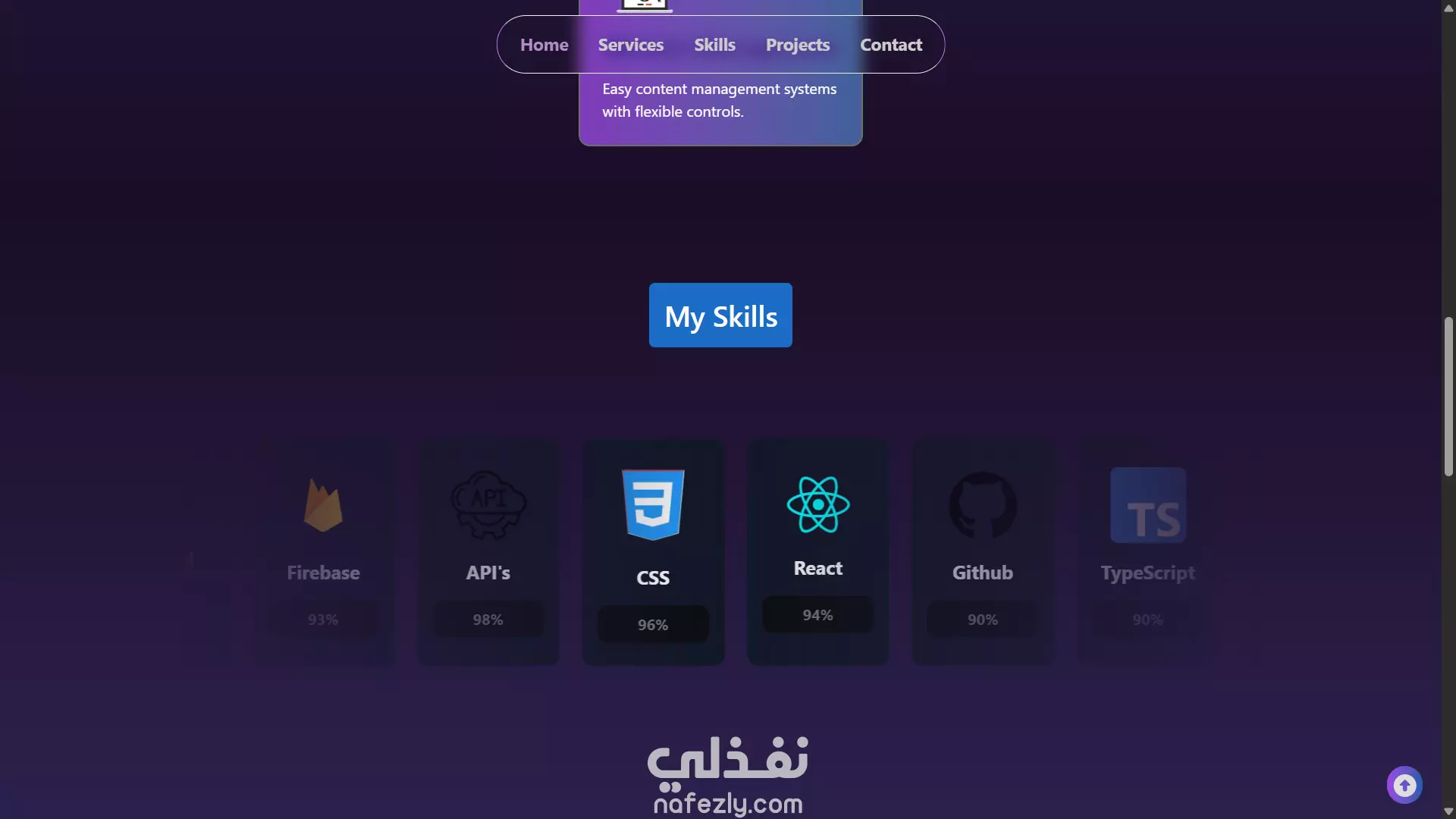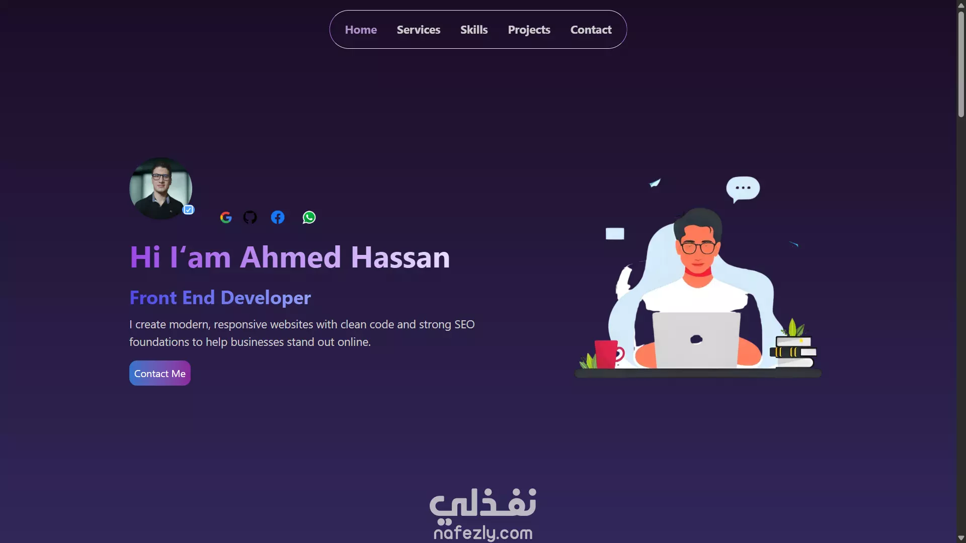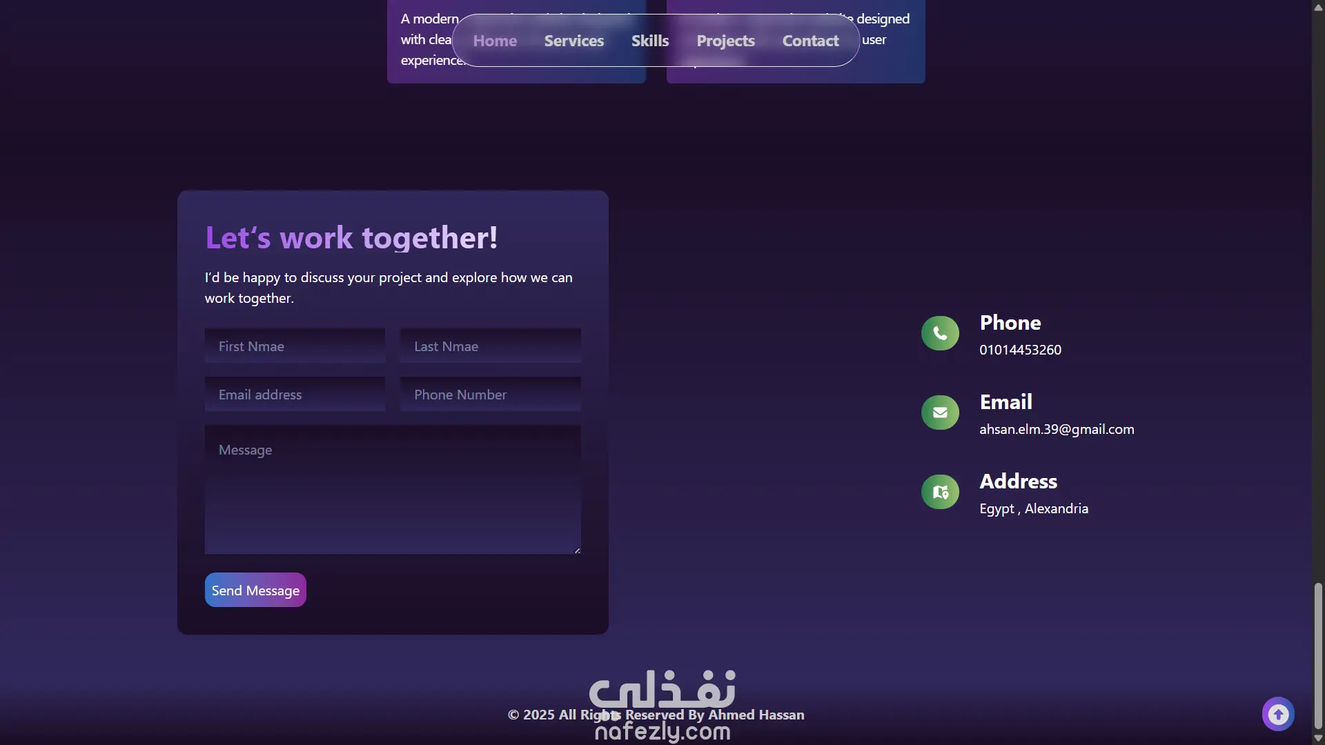 portfolio شخصي لعرض اعمالي ونبذة عني وعن خبراتي مع توافر نموذج للتواصل
