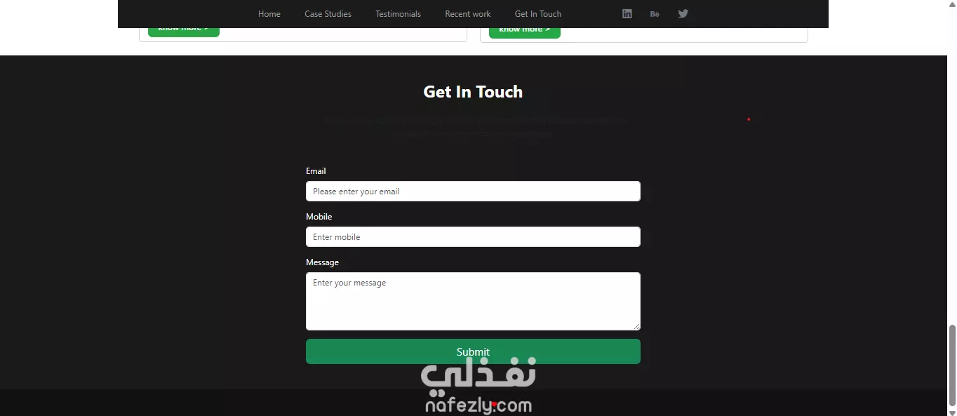 Contact Section → طرق التواصل (إيميل، لينكدإن، GitHub).