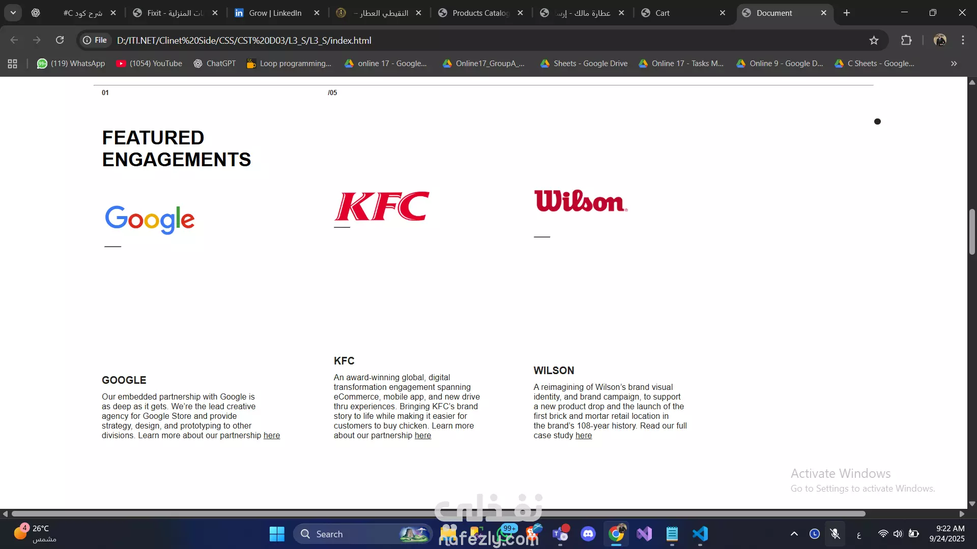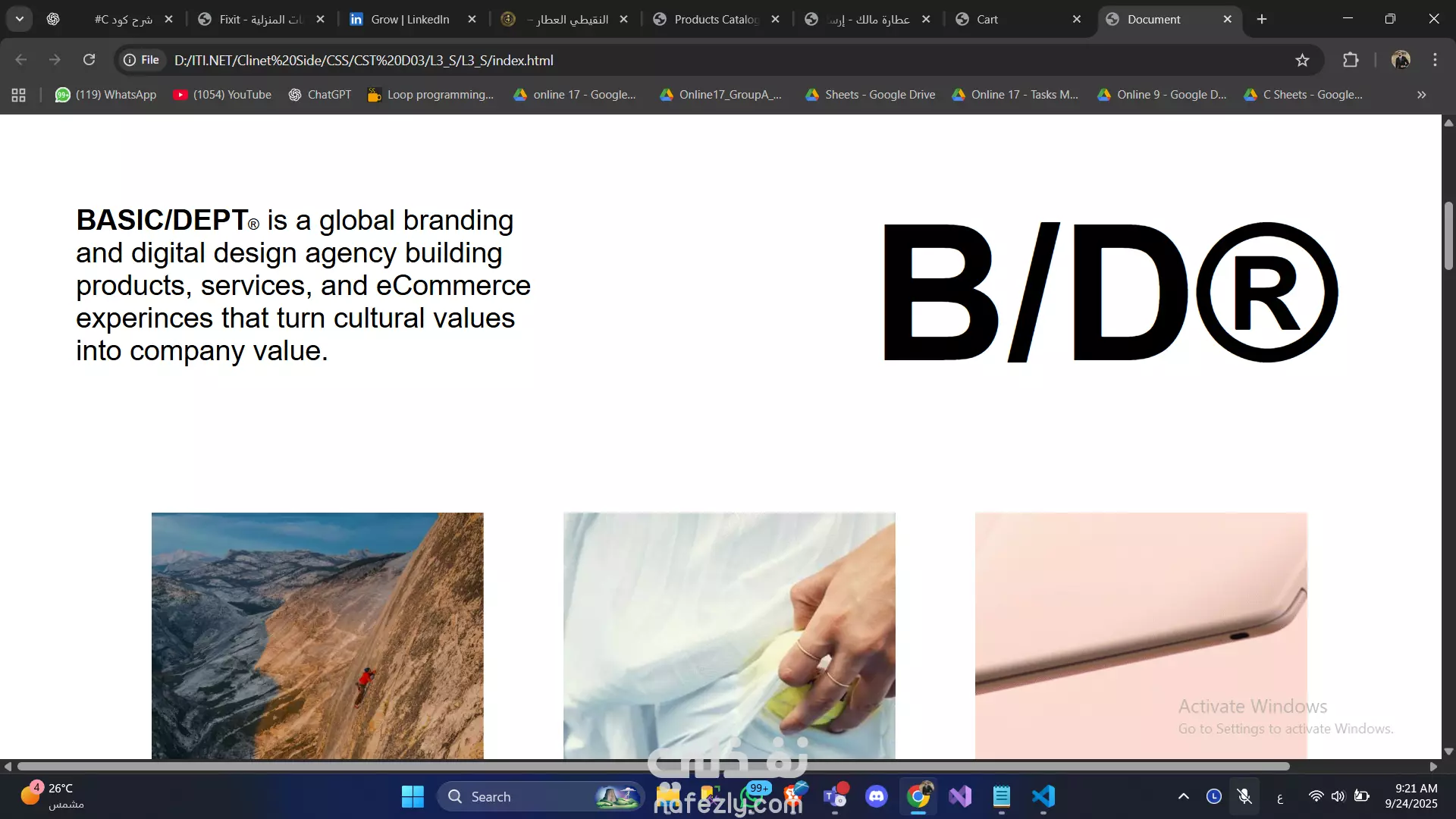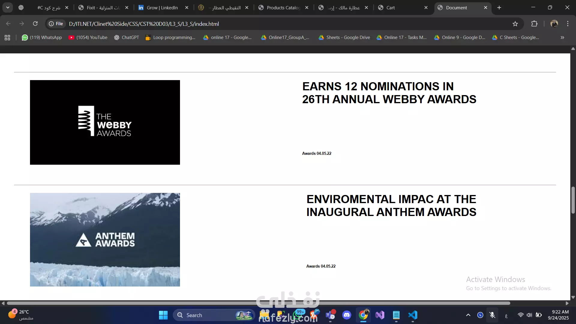 أقسام مخصصة لعرض الأعمال والأخبار.
