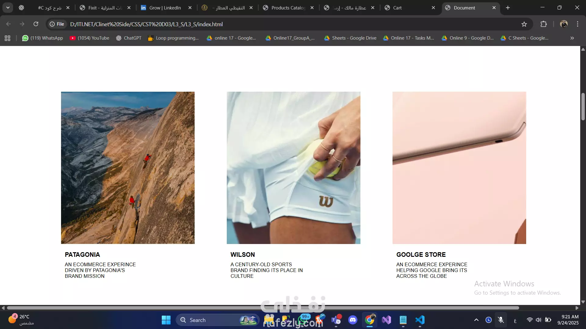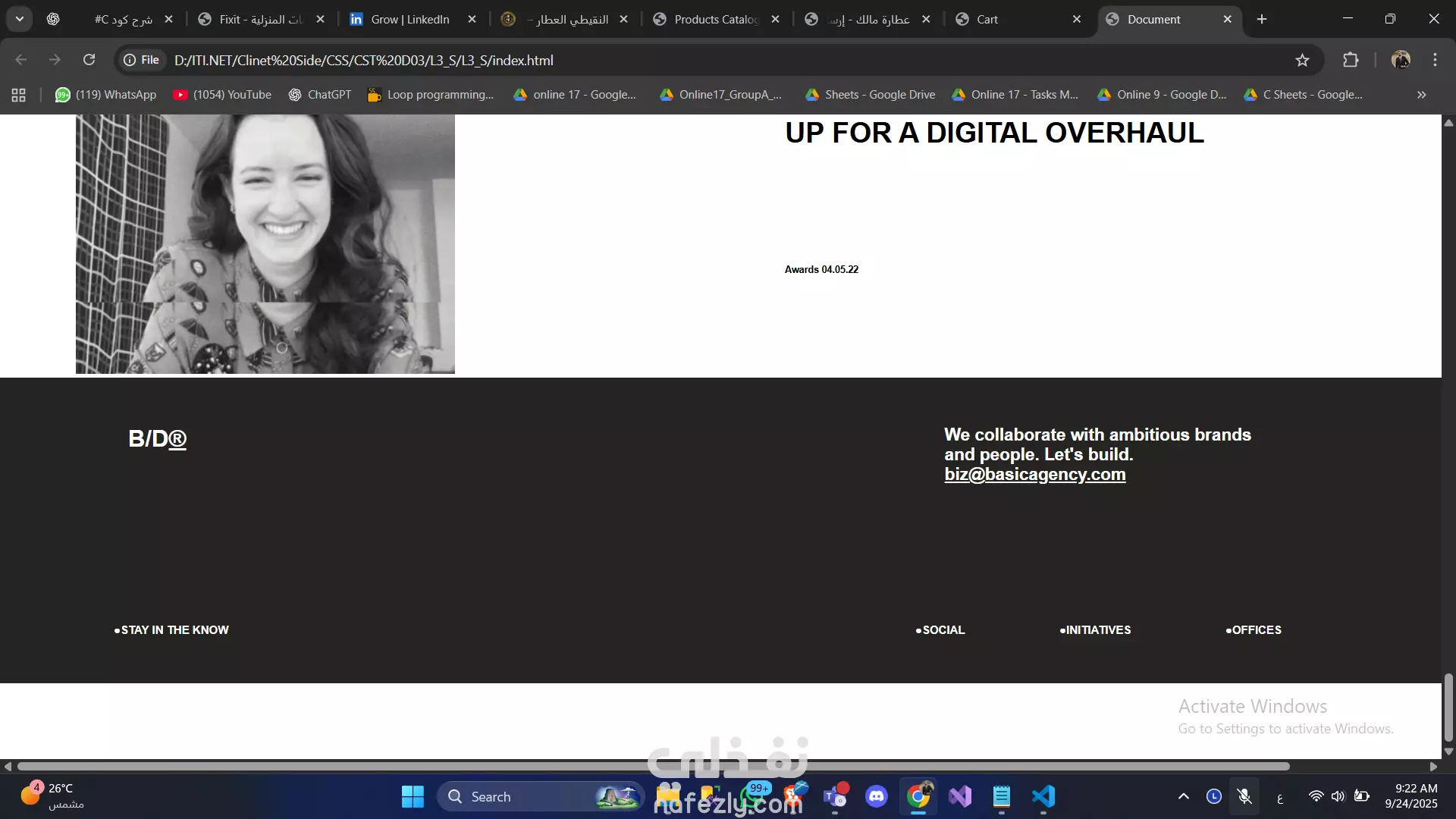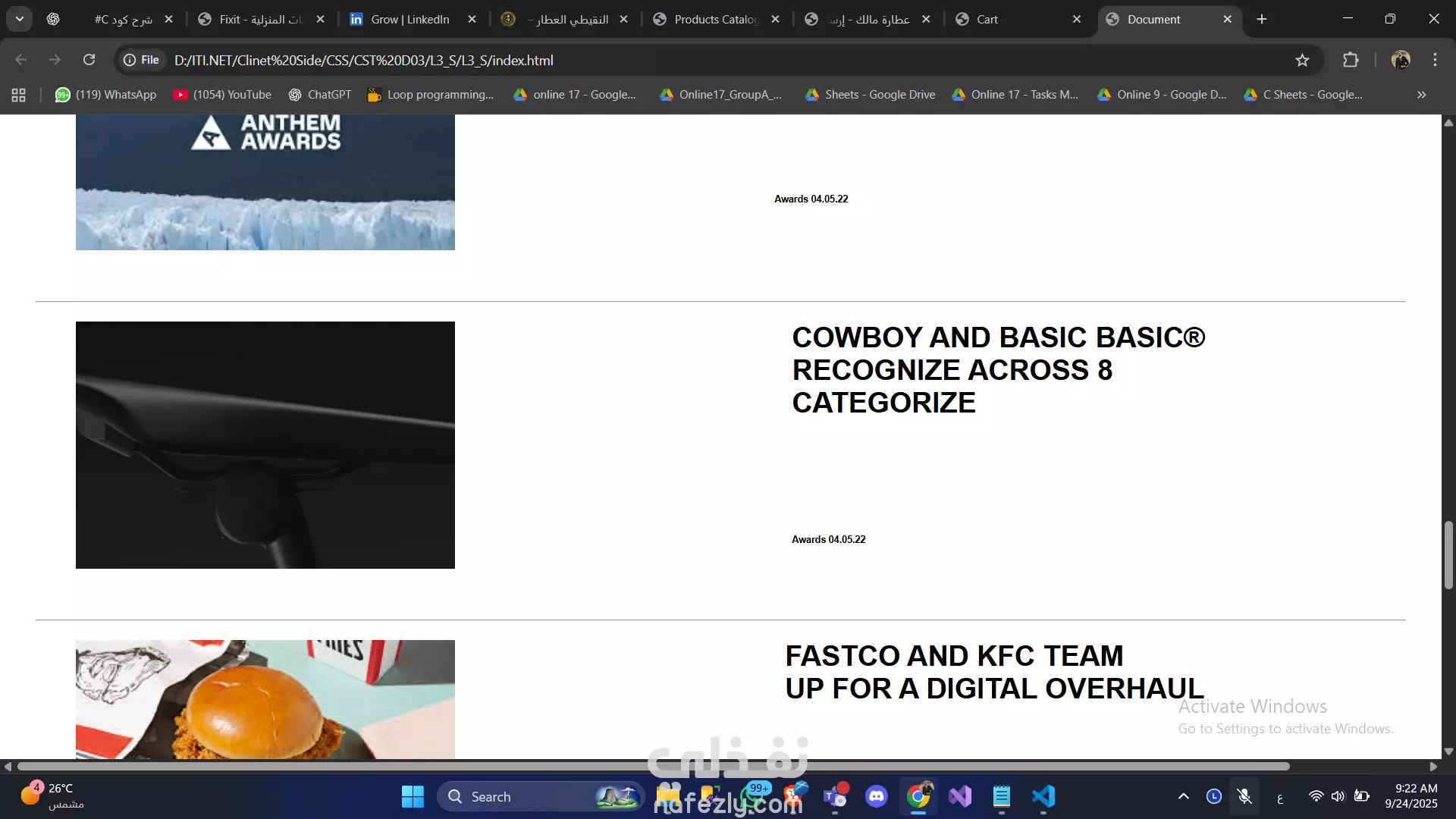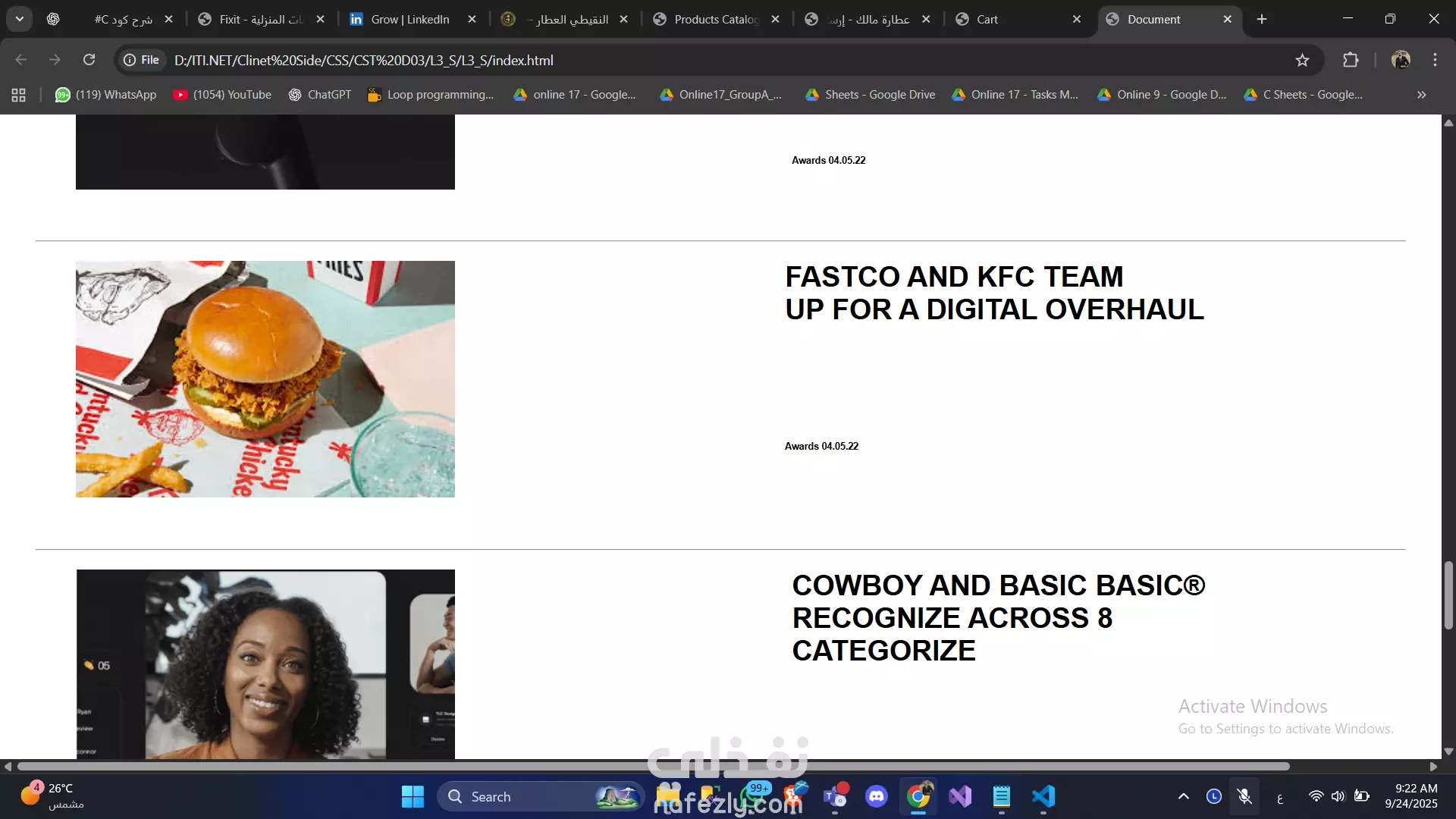 أقسام مخصصة لعرض الأعمال والأخبار.