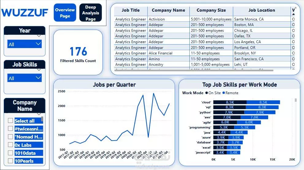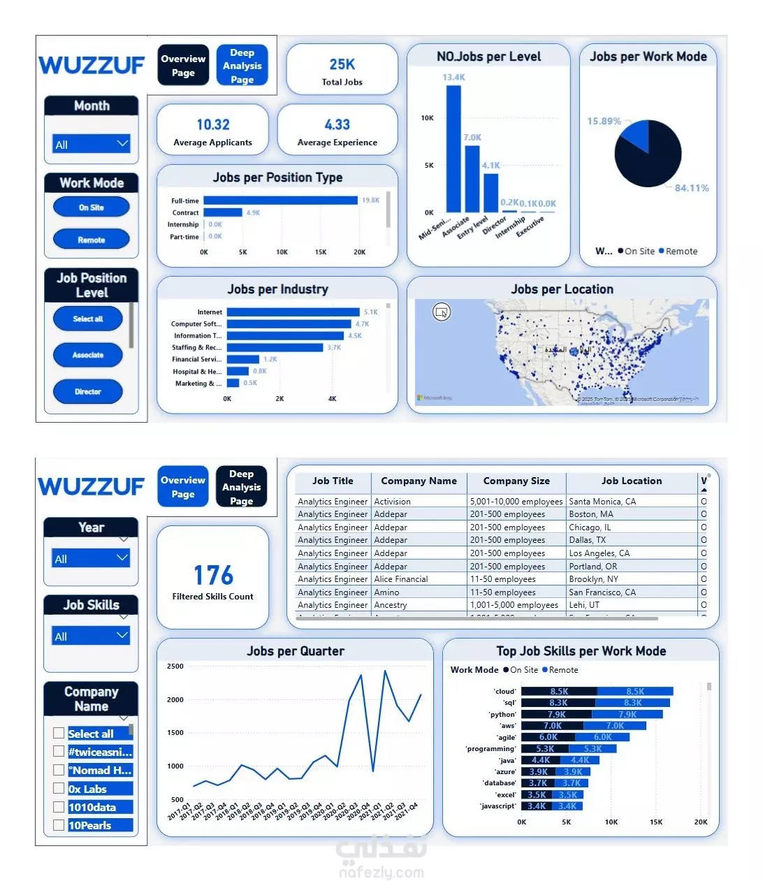 Wuzzuf Jobs Analysis Dashboard using Power BI - داشبورد باستخدام باور بي اي
