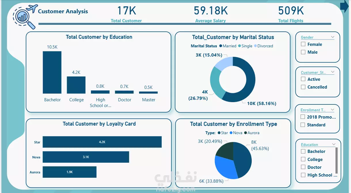 تصميم Dashboard تفاعلي لقياس ولاء عملاء شركات الطيران باستخدام Power BI