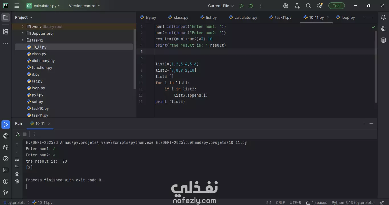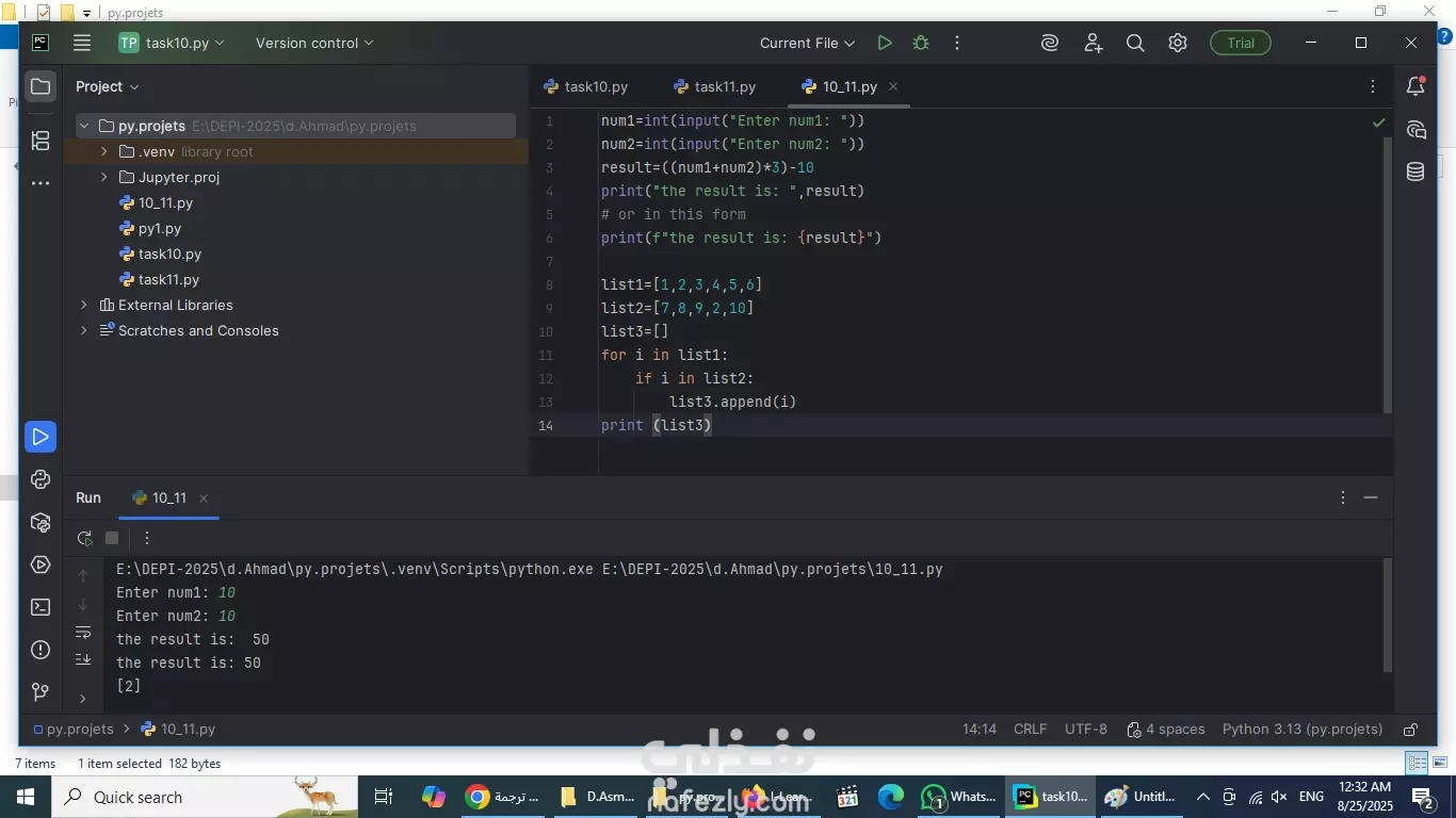 تنفيذ برامج بايثون لحل مسائل حسابية والتعامل مع القوائم