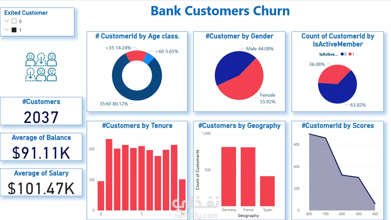 كان الهدف من هذا التحليل هو معرفة نسب انسحاب العملاء من هذا البنك بالنسبة لفئات عديدة ك السن والدولة.