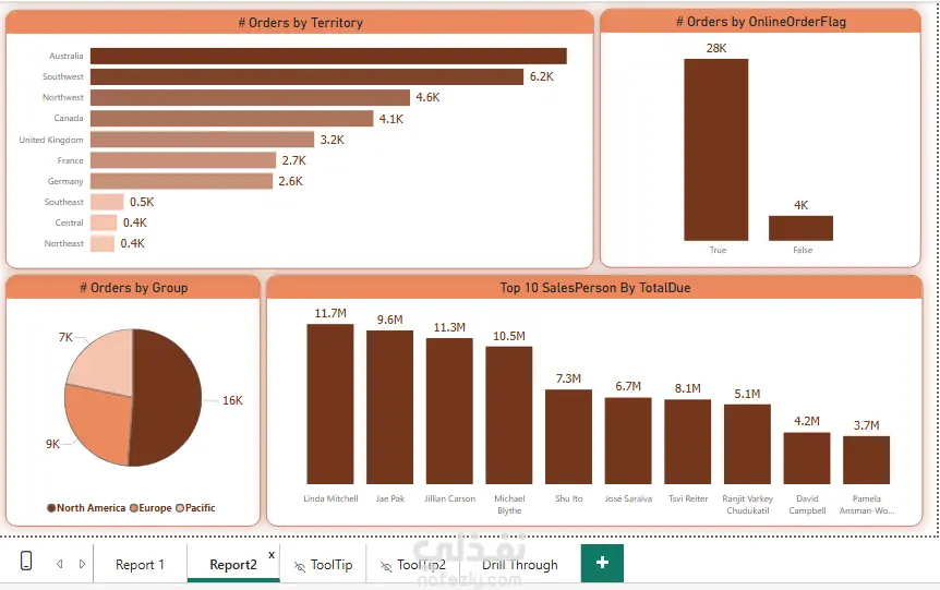أقدم لكم هذا المشروع الذي يمثل لوحة تحكم تفاعلية احترافية تم تصميمها وتحليلها باستخدام Microsoft Power BI، بالاعتماد على بيانات شركة AdventureWorks — وهي قاعدة بيانات نموذجية شائعة الاستخدام في مشاريع تحليل الأعمال.