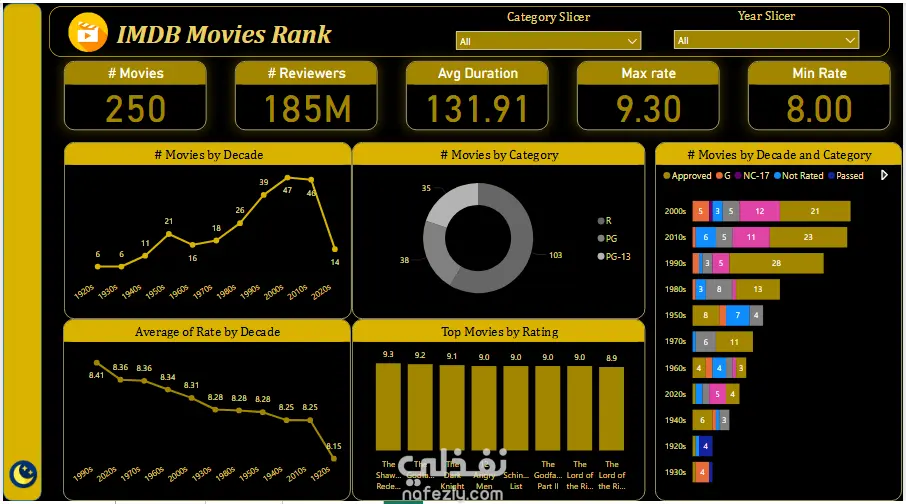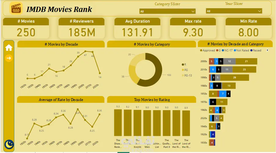 تحليل أفلام IMDB الأعلى تقييمًا باستخدام Power BI | لوحة تفاعلية ثنائية الوضع (ليلي ونهاري)