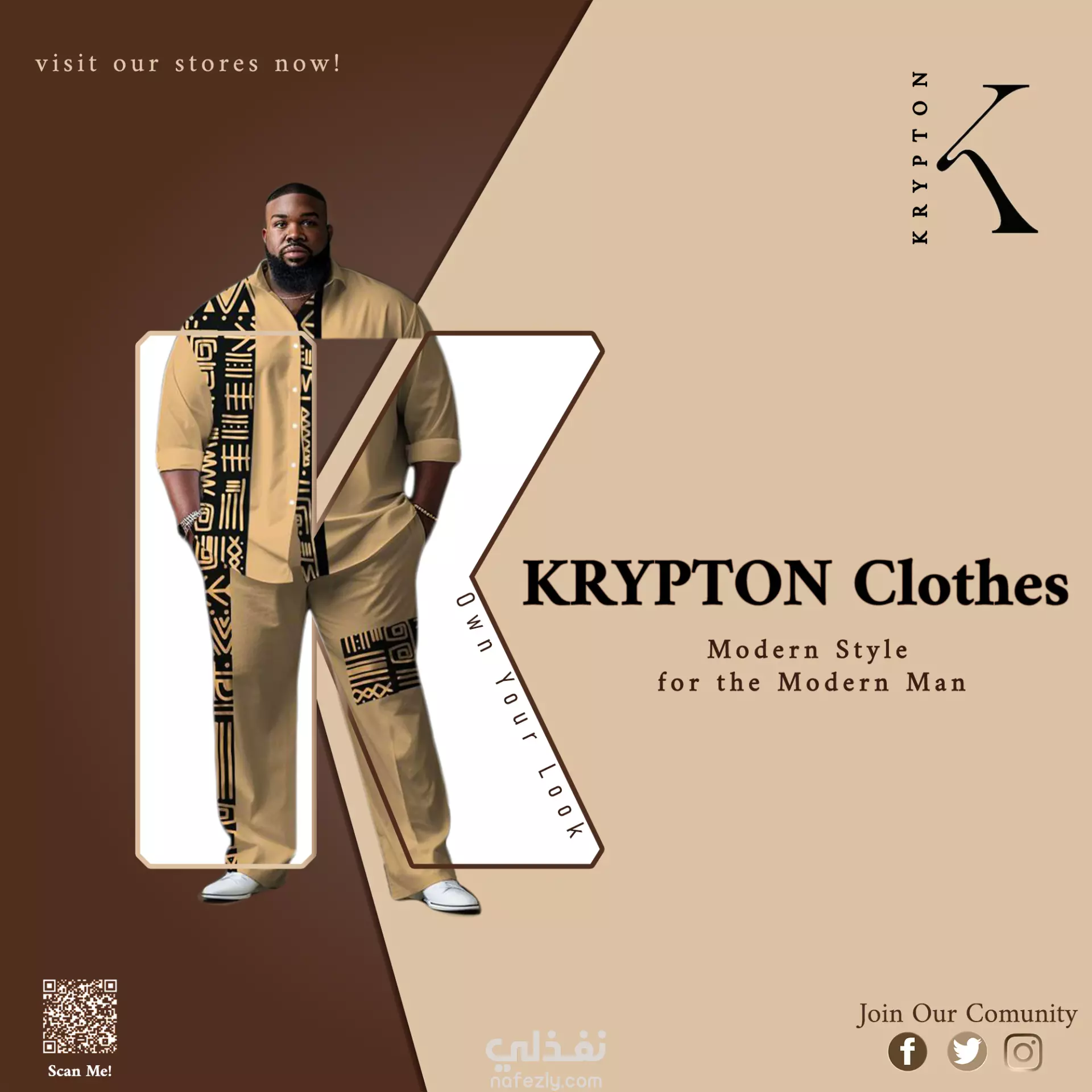 قمت بتطوير مفهوم هوية بصرية متكامل لـ "Krypton Clothes"، وهي علامة تجارية خيالية للملابس الرجالية الراقية تستهدف الرجل العصري. تضمنت عمليتي تصميم شعار بسيط وأنيق بحرف "K" مميز لترسيخ علامة تجارية راقية، بالإضافة إلى تطوير قالب مرن لمنشورات التواصل الاجتماعي باستخدام تصميم ديناميكي ولوحة ألوان ترابية متناسقة. أخيرًا، قمت بدمج جميع عناصر الهوية في تصميم ترويجي جاهز لحملة تسويق رقمية.