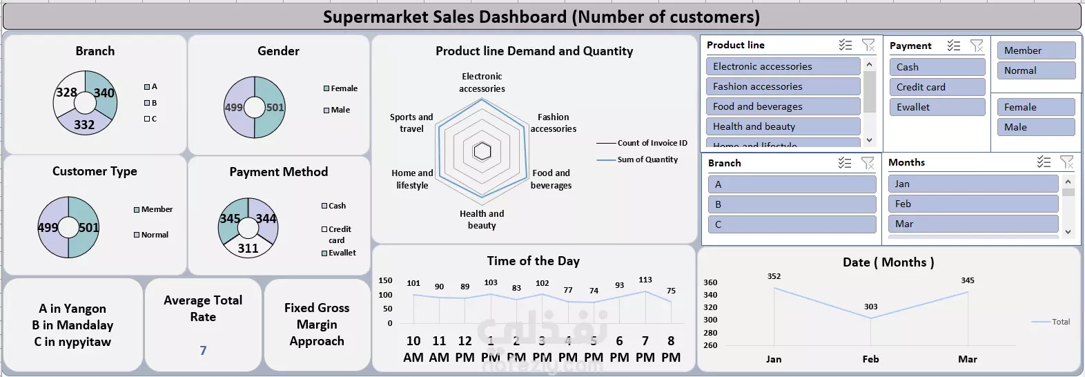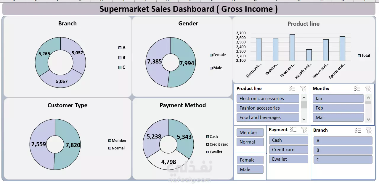 يتناول هذا المشروع تحليل بيانات سلسلة سوبرماركت تمتلك ثلاثة فروع في ثلاث مدن مختلفة. تحتوي البيانات على مجموعة متنوعة من الخصائص، بعضها يتعلق بالعملاء أنفسهم مثل الجنس ونوع الدفع وغيرها، والبعض الآخر يخص السوبرماركت مثل الفرع، القسم، والإجمالي اليومي. من خلال البحث، تبيّن أن نوع النشاط التجاري هو البيع بالتجزئة، وأن السلسلة تعتمد نموذج هامش الربح الثابت في عملياتها. بناءً على ذلك، ركز التحليل بشكل أساسي على سلوك العملاء وإجمالي الدخل الإجمالي (Gross Income) من كل عملية شراء. تم استخدام برنامج Excel في التحليل، وتم الاعتماد على أدوات مثل الجداول المحورية (Pivot Tables)، المخططات التفاعلية، وصيغ Excel لتحليل الأنماط والعلاقات داخل البيانات، مما يساعد في تقديم رؤى تفصيلية لدعم اتخاذ القرار وتحسين الأداء التجاري.