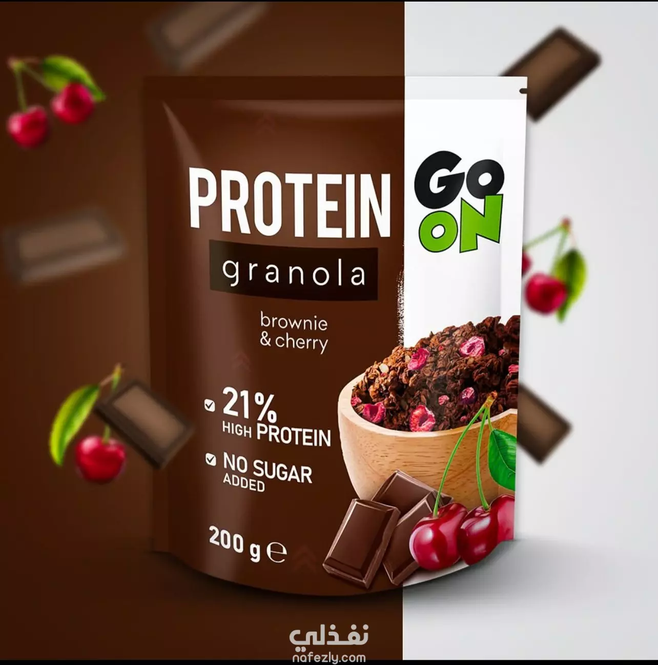 •تصميم إعلان دعائي لمتجر Healthy Life للترويج عن منتجات غذائية صحية بمناسبة العودة للمدارس. التصميم يضم مجموعة متنوعة من المنتجات (عسل، حلاوة، مشروبات صحية، سناك دايت...) مع دمج عناصر بصرية جذابة مثل الطفل بحقيبة مدرسية وأتوبيس المدرسة لتوصيل فكرة الاهتمام بصحة الأطفال أثناء الدراسة. تم استخدام ألوان مبهجة وخلفية سماوية تعكس الإيجابية والحيوية، مع إبراز العروض ورقم التواصل بشكل واضح يجذب الانتباه. •تصميم موك أب احترافي لمنتج غذائي صحي Protein Granola – Brownie & Cherry. التصميم يبرز العبوة بشكل جذاب بخلفية منقسمة بين اللونين البني والأبيض لتمثيل مزيج الشوكولاتة والانتعاش. تم إضافة عناصر بصرية مثل قطع الشوكولاتة وحبات الكرز لإبراز المكونات الأساسية، مع التركيز على أهم مميزات المنتج (21% بروتين عالي – بدون إضافة سكر). التصميم يعكس هوية عصرية وصحية، ويجذب الانتباه بطريقة أنيقة واحترافية مناسبة للتسويق.