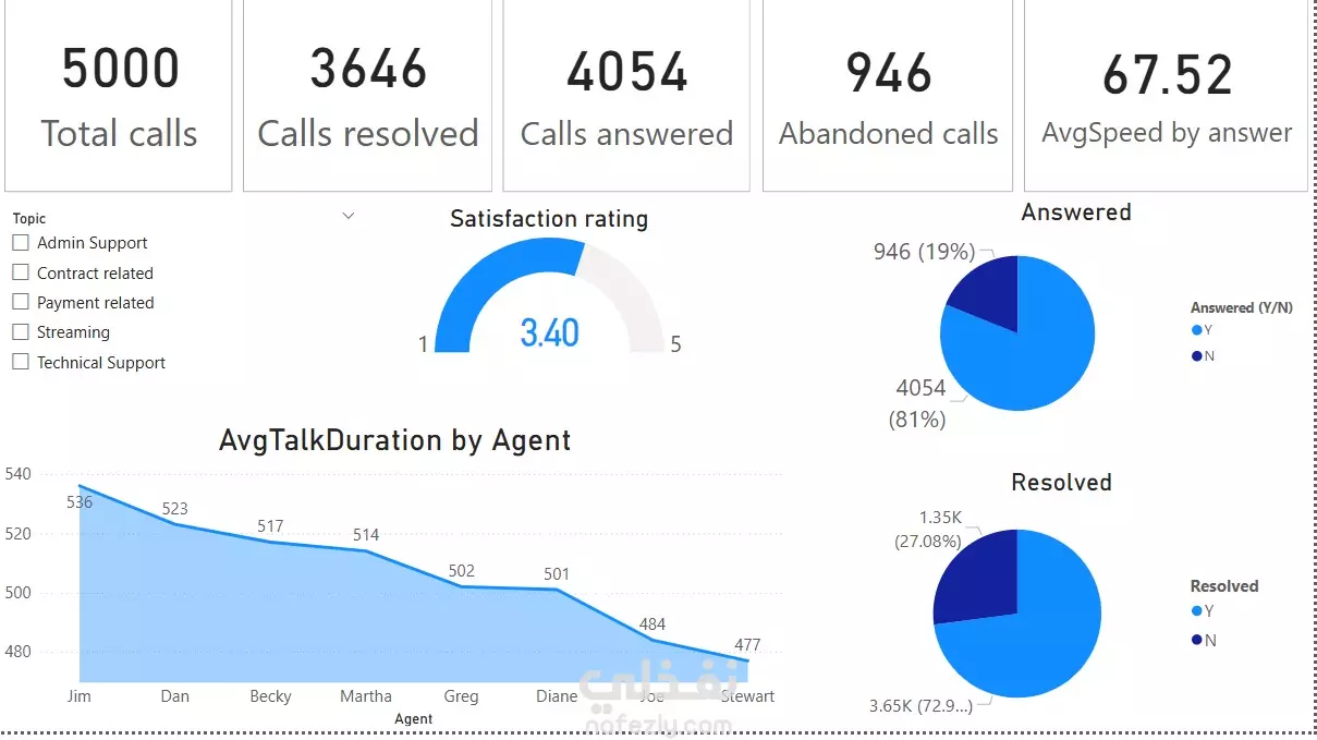 تحليل مؤشرات الاداء للمكالمات وممثلي خدمة العملاء في مجال الكول سنتر