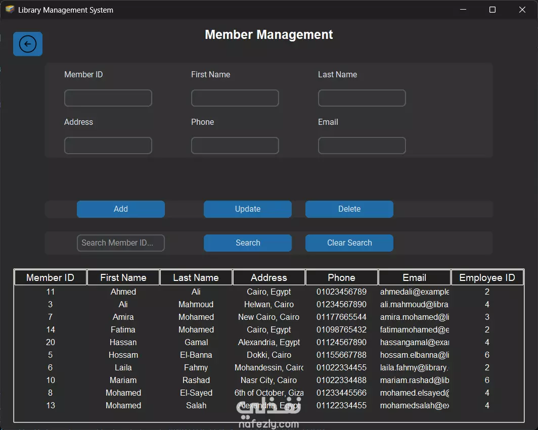 قمت بتطوير برنامج إدارة مكتبة باستخدام لغة Python وقاعدة بيانات SQLite. البرنامج يتيح إدارة الكتب والقراء وعمليات الاستعارة والإرجاع، مع إمكانية إضافة وتعديل وحذف واستعراض البيانات بسهولة. تم التركيز على تصميم قاعدة بيانات منظمة وتنفيذ العمليات الأساسية (CRUD)، مما يجعل النظام عمليًا وقابلًا للتطوير لإضافة مميزات مثل البحث والتقارير لاحقًا.