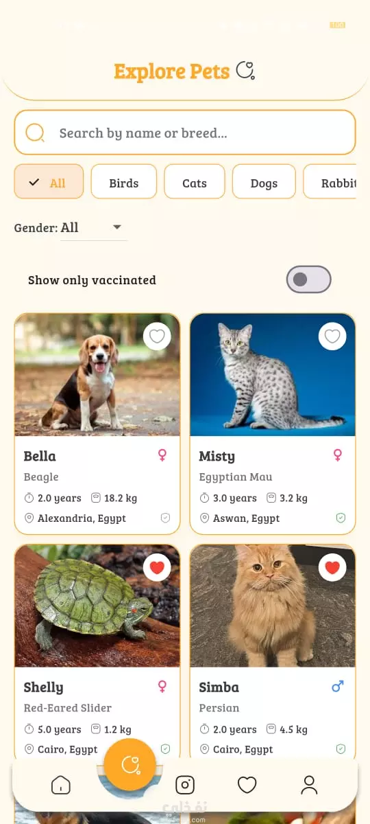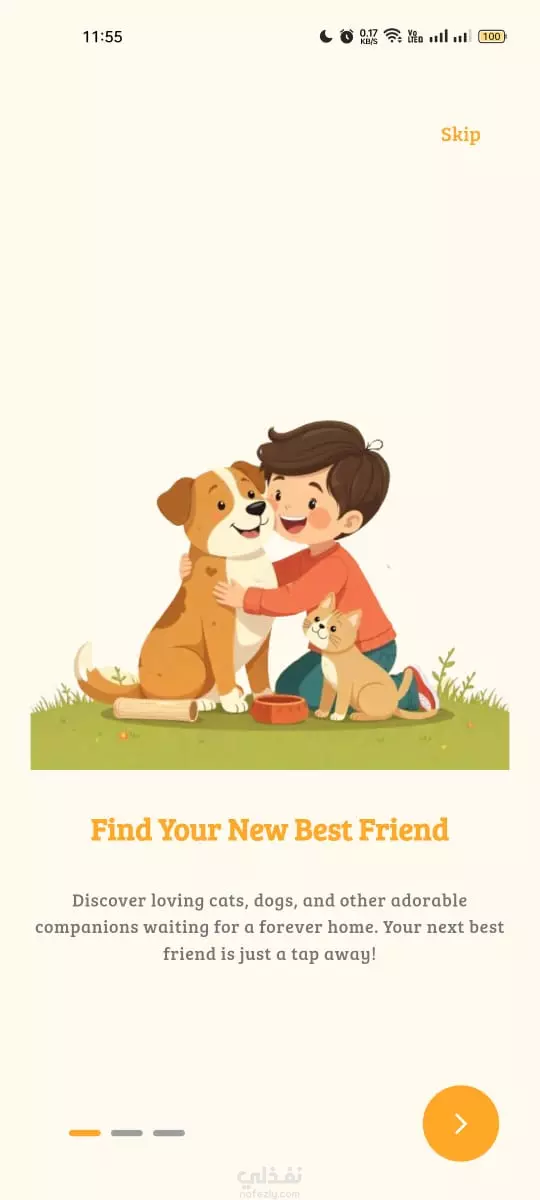 Pet Adoption App هو تطبيق حديث يساعد المستخدمين على اكتشاف الحيوانات المتاحة للتبنّي من الملاجئ القريبة، التواصل مع مجتمع محبّ للحيوانات، ومشاركة القصص. مبني باستخدام Flutter + GetX مع Firebase (Auth, Firestore, Storage, Cloud Messaging) ويقدّم تجربة سلسة، سريعة، ومصقولة. المميزات الأساسية شاشة ترحيبية + Onboarding مع تسجيل دخول (Email/Google). تصفح الحيوانات مع صور حقيقية، فلاتر، ومعلومات عن الملاجئ. حفظ الحيوانات المفضلة للتبنّي لاحقًا. إضافة حيوان جديد للتبنّي مع صور. بروفايل مستخدم قابل للتعديل + قائمة المفضلات. إشعارات لحظية بالتحديثات (تبنّي جديد، منشورات المجتمع). دعم الثيم الداكن والفاتح مع واجهة مستخدم عصرية. تنقّل سلس عبر شريط سفلي متحرك. ميزات المجتمع إنشاء منشورات مع صور/فيديو وقصص تبنّي. تفاعل لحظي: إعجاب وتعليقات على المنشورات. نظام متابعة لتخصيص الـ Feed. استكشاف قصص الحيوانات الرائجة والتحديثات الجديدة. التكنولوجيا المستخدمة Flutter: التطوير متعدد المنصات GetX: إدارة الحالة والملاحة Firebase Auth + Firestore + Storage + Cloud Messaging animated_notch_bottom_bar للتنقّل CachedNetworkImage لتحميل الصور بكفاءة