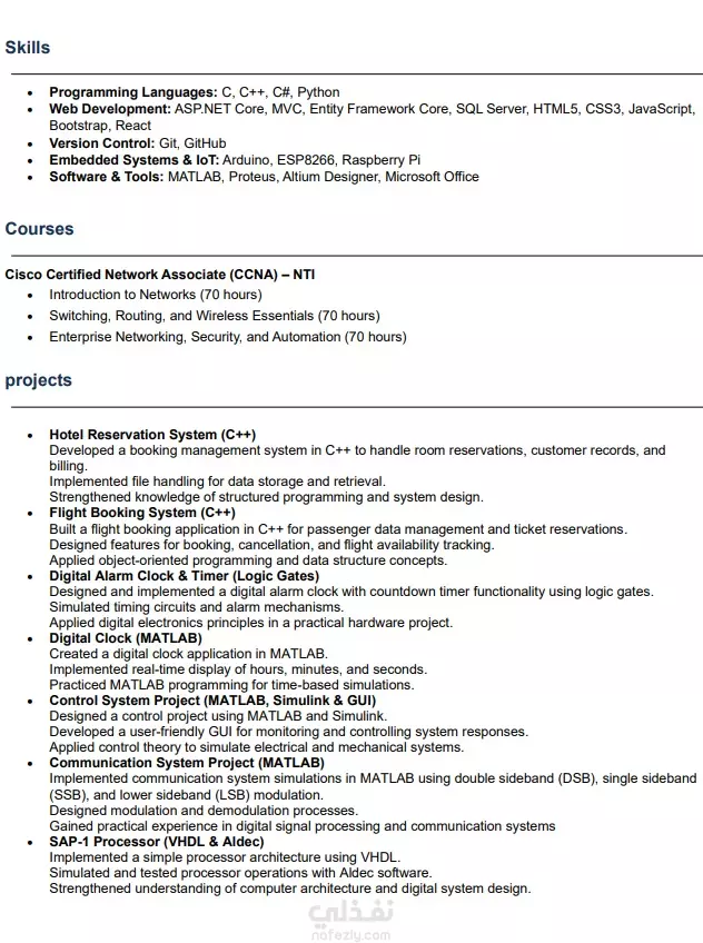 سأقوم بكتابة وتصميم سيرة ذاتية (CV/Resume) احترافية تساعدك على التميز في سوق العمل. باللغة العربية أو الإنجليزية. تنسيق احترافي وجذاب. متوافقة مع أنظمة التوظيف (ATS). تسليم نسخة Word + PDF. إمكانية إضافة Cover Letter أو LinkedIn Profile مقابل تطويرات إضافية.