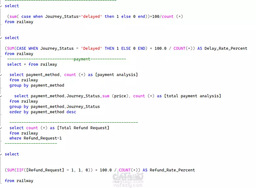 I worked on a dataset of railway journey transactions to calculate business KPIs using SQL Server.
