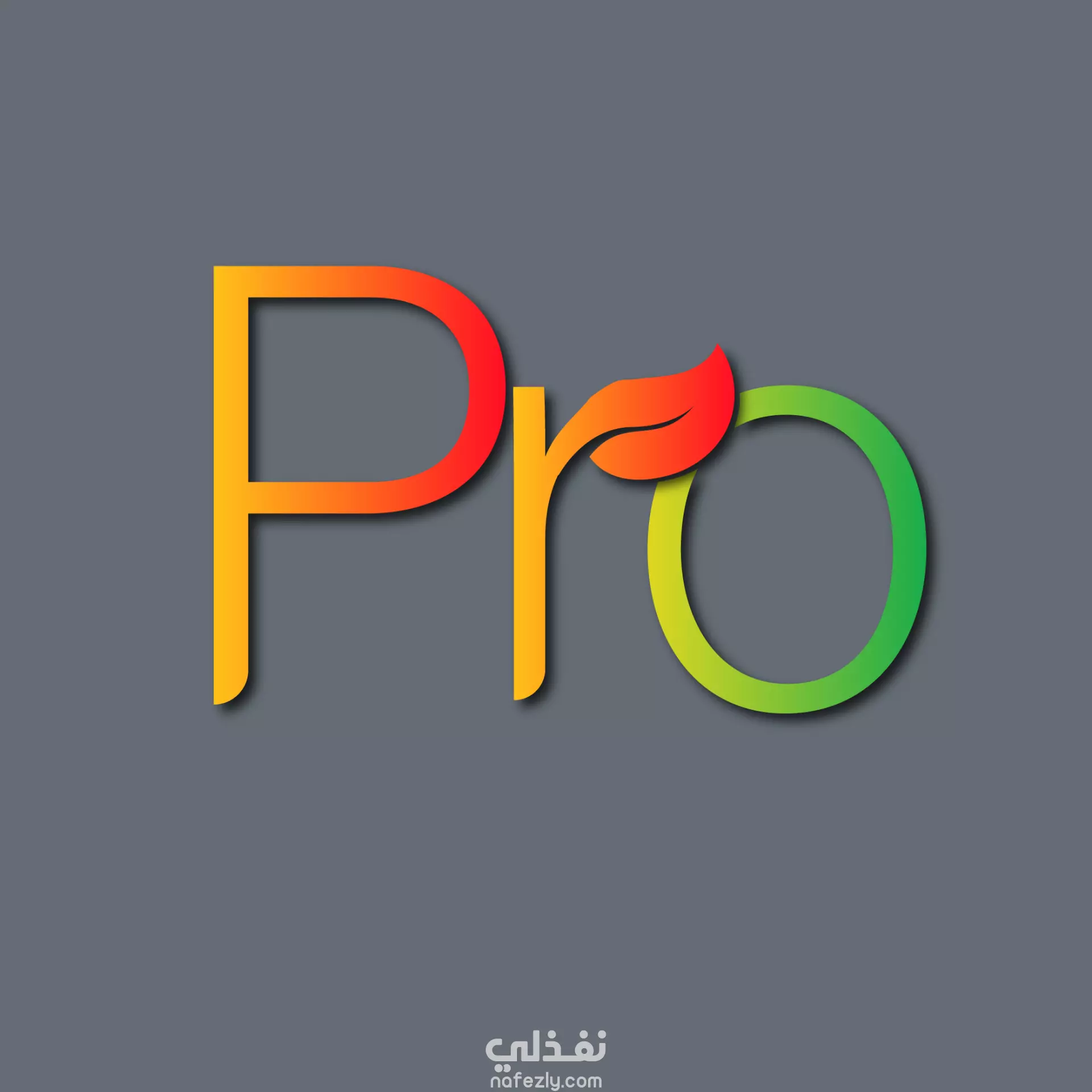 كلمة Pro بتدرجات برتقالية وخضراء مع ورقة نباتية، تمثل النمو والإبداع.