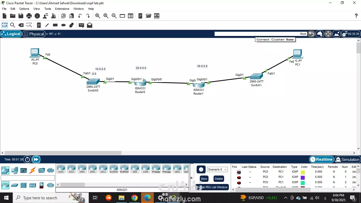 Configuring OSPF Packet tracer