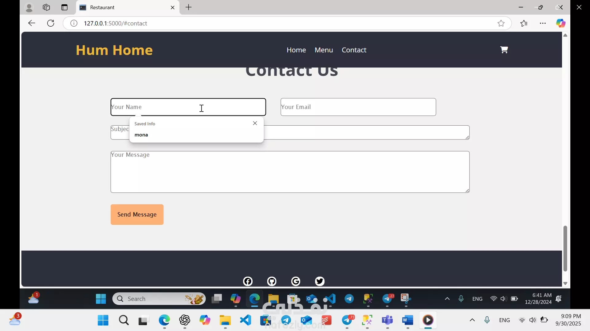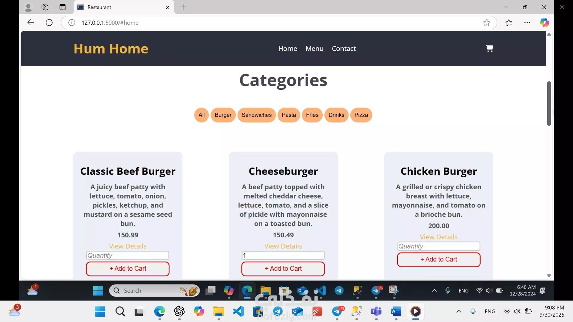 **Hum Home - Fast Food Restaurant Management System* Hum Home is a complete *restaurant management system* designed to streamline fast food operations. The system includes features for managing *menus, orders, and customer information*, with a *connected database* for efficient data handling and real-time updates. We developed a responsive interface to ensure smooth user experience and used a structured *backend–database integration* to handle all restaurant workflows seamlessly. Hum Home is a complete *restaurant management system* designed to streamline fast food operations. The system includes features for managing *menus, orders, and customer information*, with a *connected database* for efficient data handling and real-time updates. We developed a responsive interface to ensure smooth user experience and used a structured *backend–database integration* to handle all restaurant workflows seamlessly.