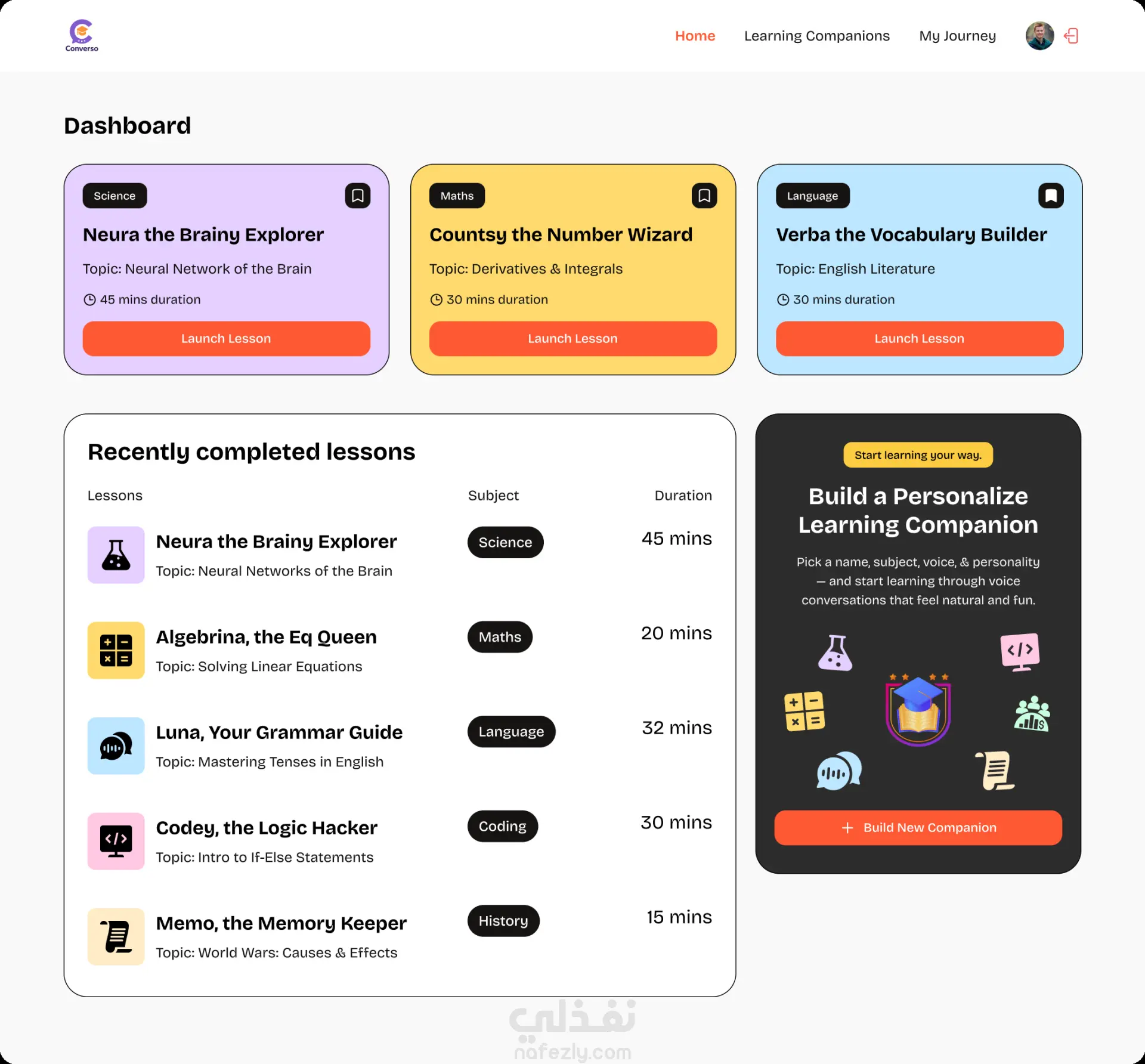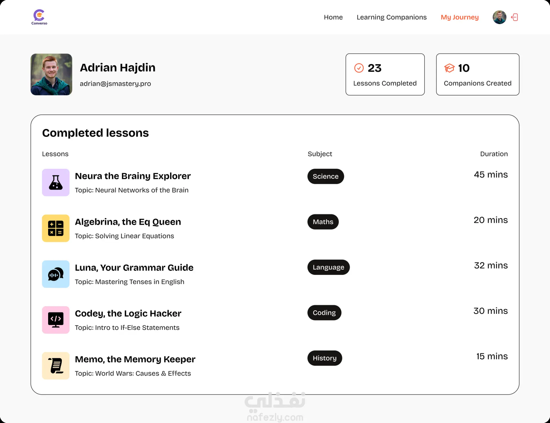 - تجربة تعلم تفاعلية بالذكاء الاصطناعي: الميزة الأكثر ابتكارًا في المشروع هي دمج مساعد Vapi AI الصوتي. يتيح هذا للمتعلمين التفاعل مع المحتوى صوتيًا في الوقت الفعلي، طرح الأسئلة، والحصول على إجابات فورية، مما يحول تجربة التعلم من سلبية إلى تفاعلية.
