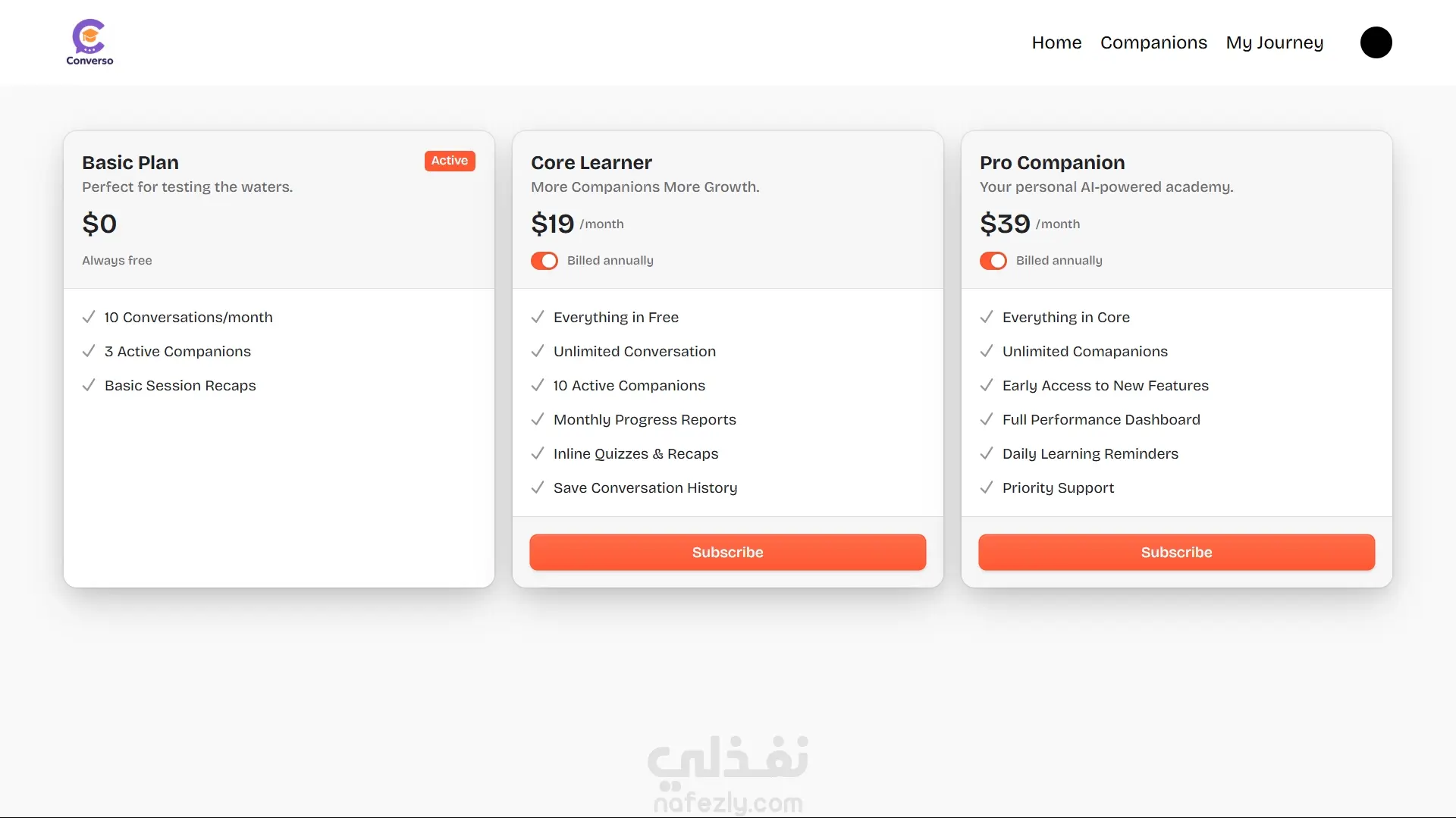 - نظام اشتراكات متكامل: تم بناء نظام دفع آمن وقابل للتطوير باستخدام بوابة Stripe، مما يسمح للمستخدمين بالاشتراك في الخطط المختلفة وإدارة مدفوعاتهم بسهولة.