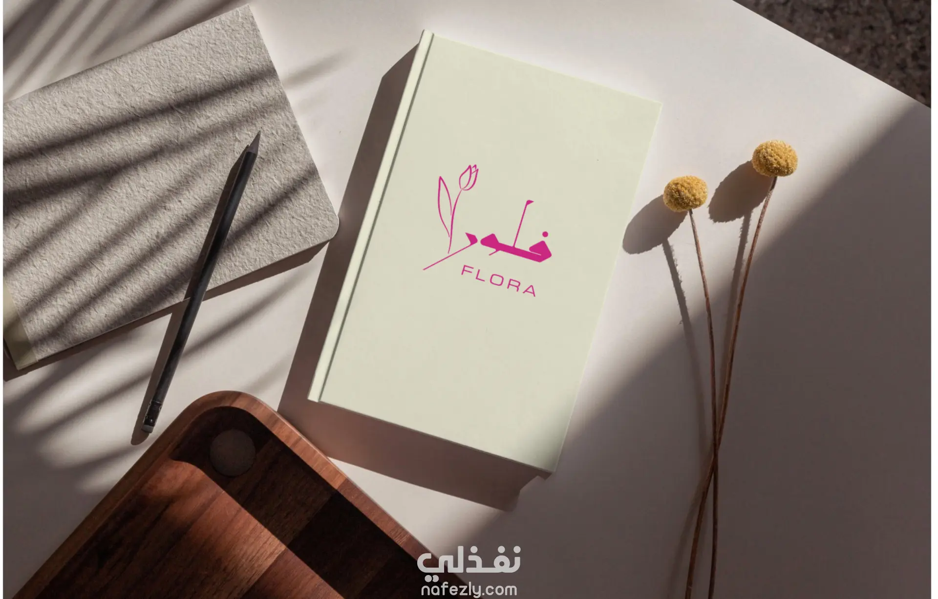 تصميم شعار فلورا – متجر ورد شعار بسيط وأنيق يجمع بين رمز الزهرة واللون الوردي ليعكس الرقة والجاذبية، مع تصميم مرن يصلح للتغليف، البطاقات والسوشيال ميديا.