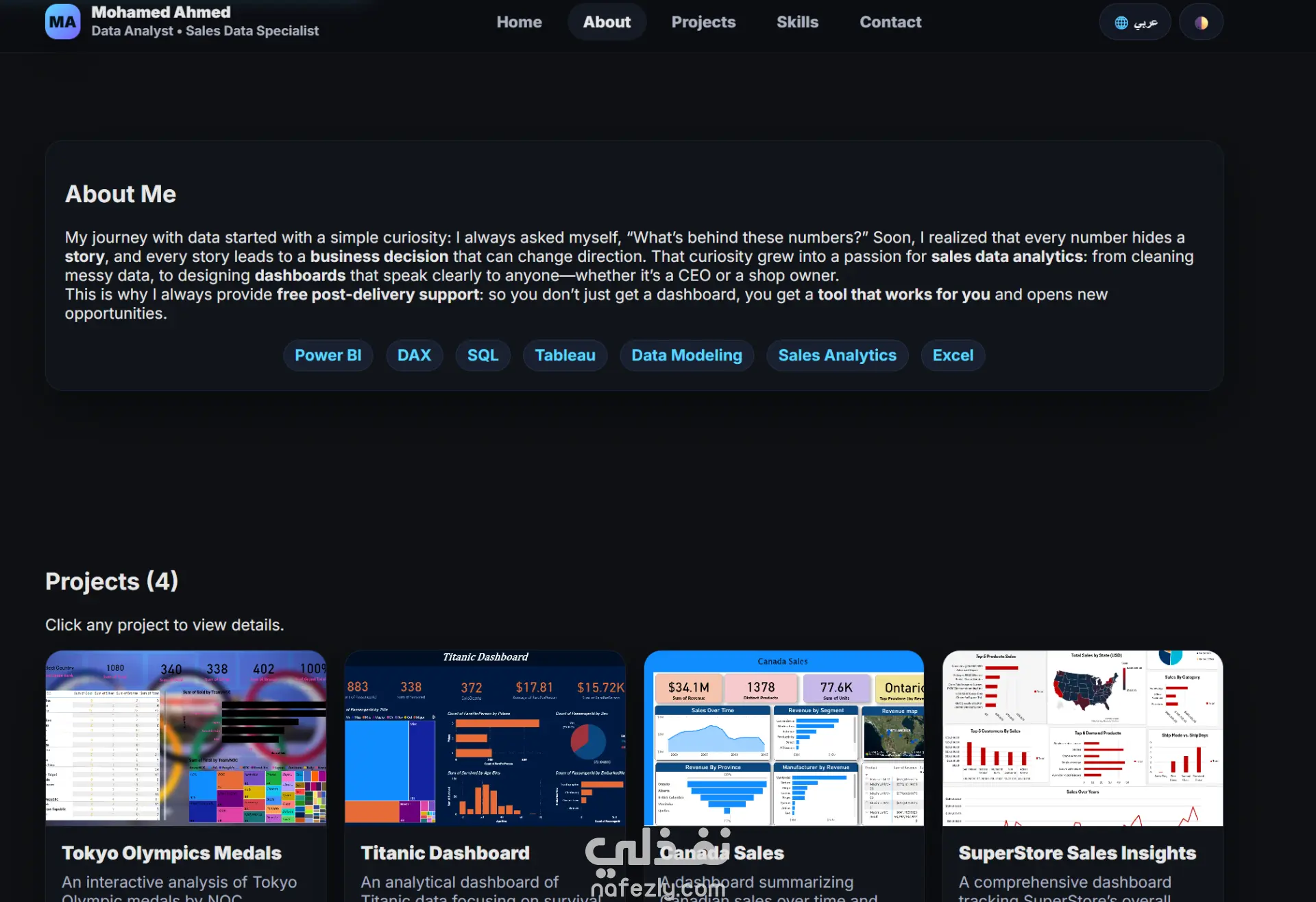 تصميم بورتفوليو جذاب ومخصص لهويتك.