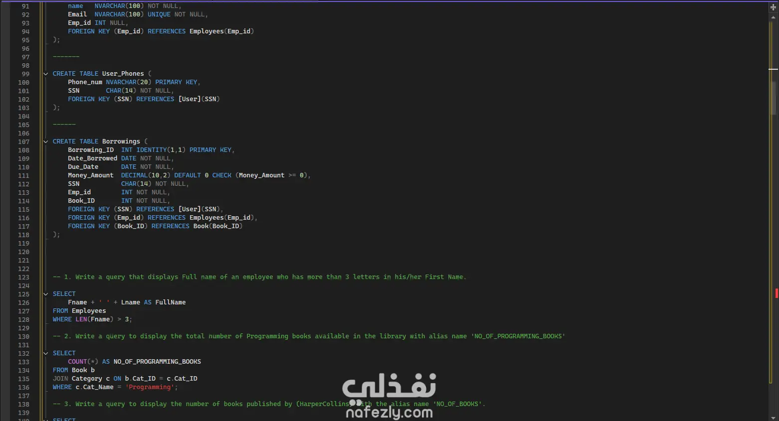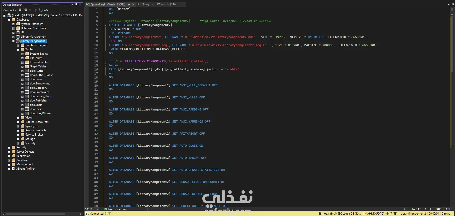 قاعدة البيانات - نظام إدارة المكتبة