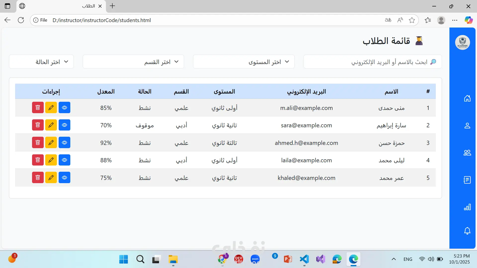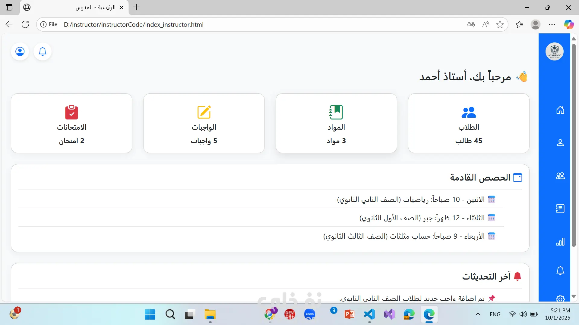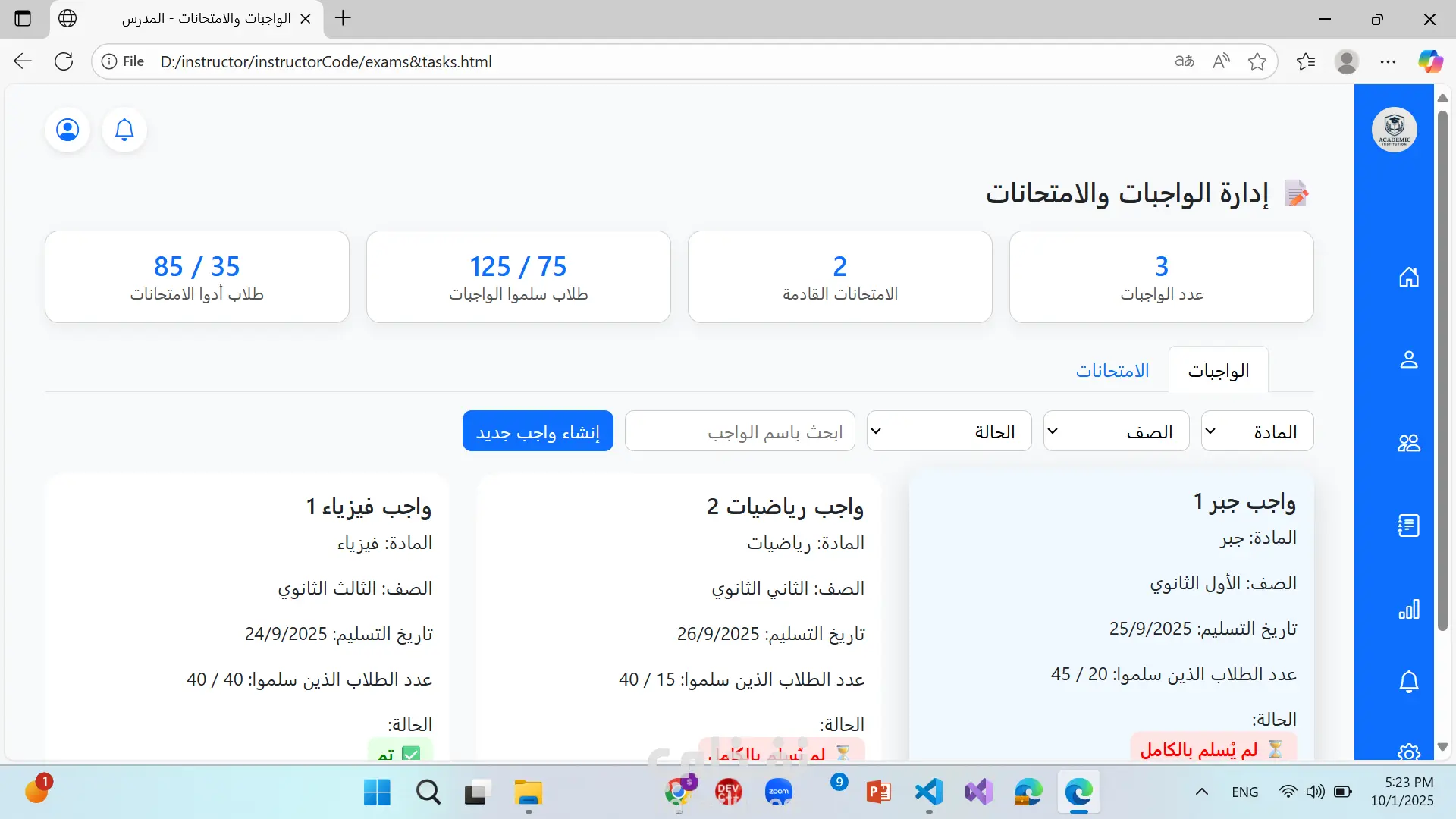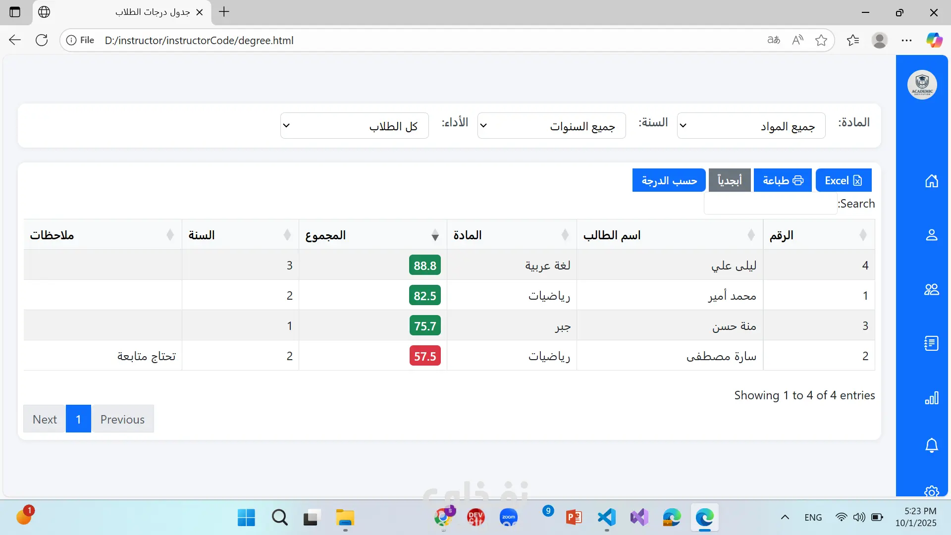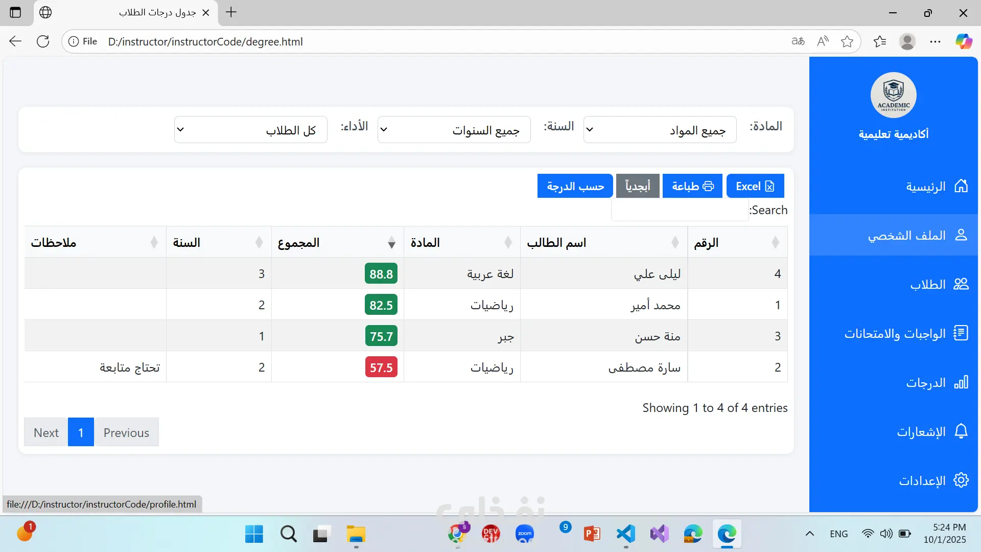 موقع منصة تعليمية ل معلم فيها درجات الطلاب و الطلام و اضافة امتحانات و عرض درجات الامتحانات و اضافة واجبات و عرض كافة التفاصيل