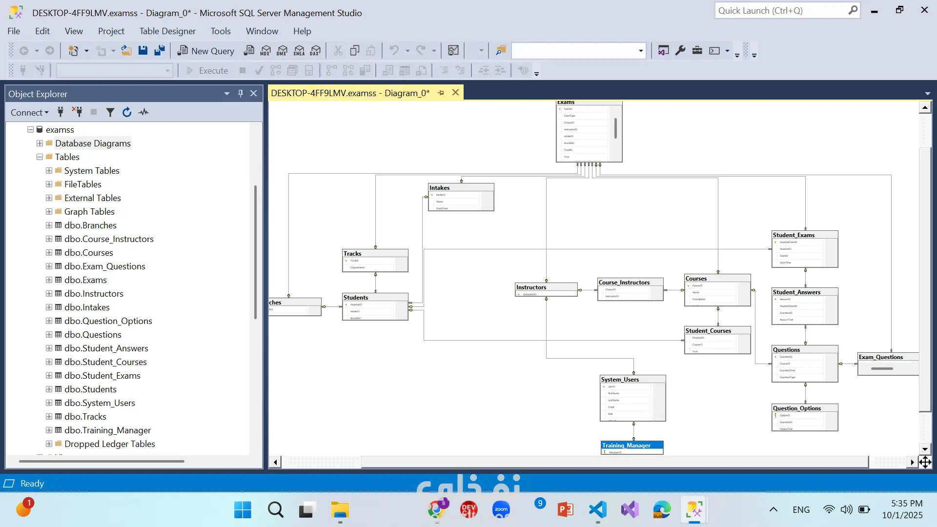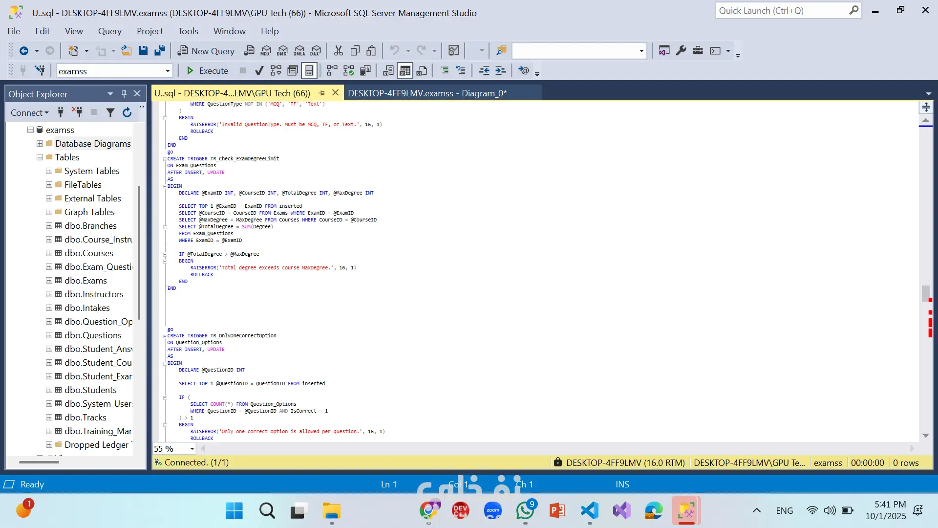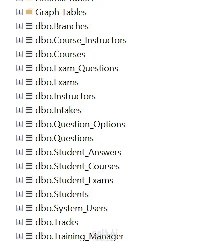 قمتُ بتنفيذ مشروع Examination System Database على SQL Server يشمل تصميم، إنشاء، وتأمين قاعدة بيانات متكاملة لإدارة الامتحانات في مؤسسة تدريبية/تعليمية.