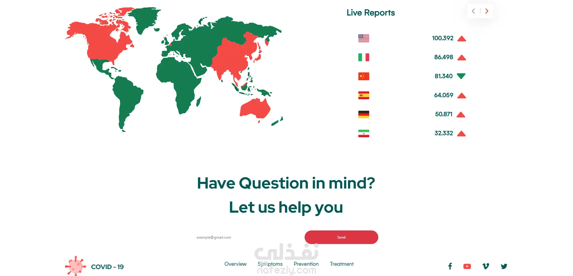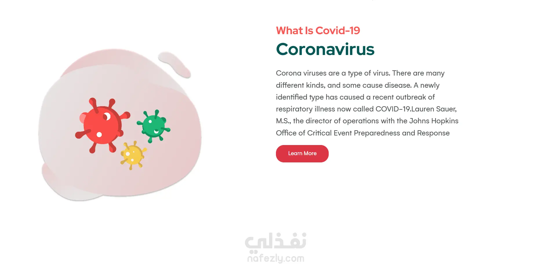 صفحة هبوط للتوعيه عن كيفية التعامل مع فيروس كورونا استخدمت html,css اضفت انيميشن فى كل سيكشن حتى يساعد فى سهولة وصول المعلومه وشد انتباه المستخدم