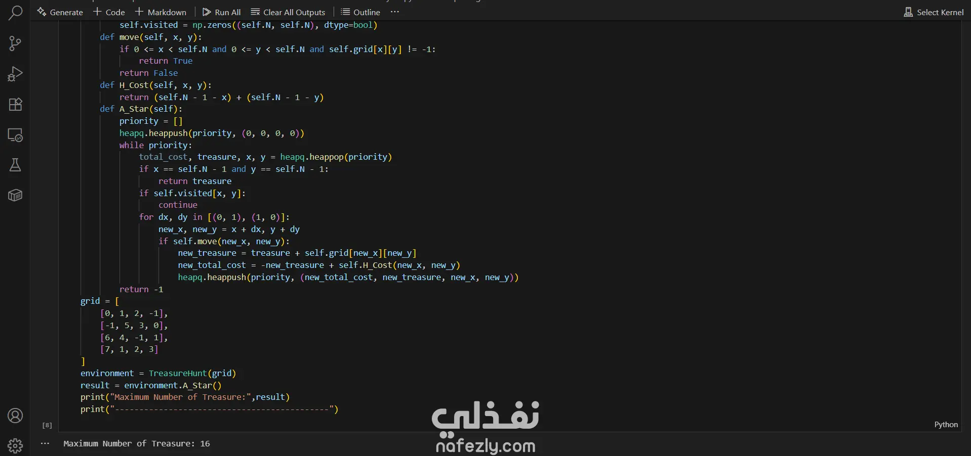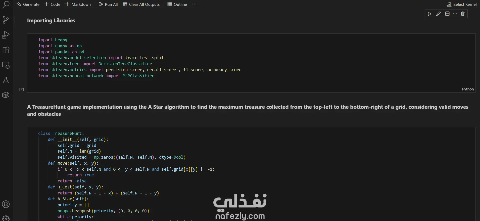 طوّرت عميلاً ذكياً للتنقل عبر الشبكة، وتجنّب العوائق، وجمع الكنوز بكفاءة. استخدمت بحث A* لتحديد المسار الأمثل، وMLP لاتخاذ القرارات بناءً على قيم الخلايا، ونهجاً قائماً على المنفعة لتحقيق أقصى قدر من النتائج. أثبتت قدرة على التكيف مع تكوين الشبكة الجديد.