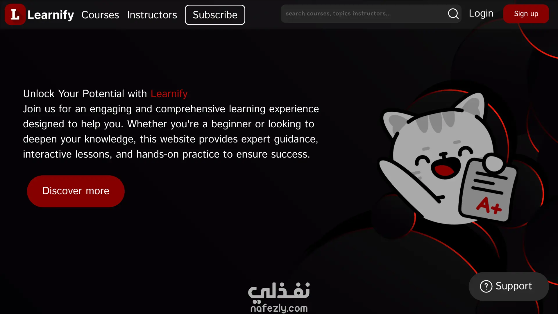 -الفكرة: توفير منصة تعليمية شاملة للمتعلمين من مختلف المستويات (مبتدئين – محترفين). -التصميم: استخدام ألوان داكنة مع لمسات حمراء لخلق هوية عصرية وجذابة. -المحتوى: إبراز دور المنصة في تقديم إرشاد الخبراء، دروس تفاعلية، وتمارين عملية تضمن نجاح المتعلم. -الوظائف: أزرار واضحة (Discover more – Sign up) لتسهيل التصفح وتشجيع المستخدم على التفاعل والتسجيل. -الأهداف: جعل عملية التعلم ممتعة، منظمة، ومشجعة على الاستمرارية من خلال تصميم بسيط وسهل الاستخدام.