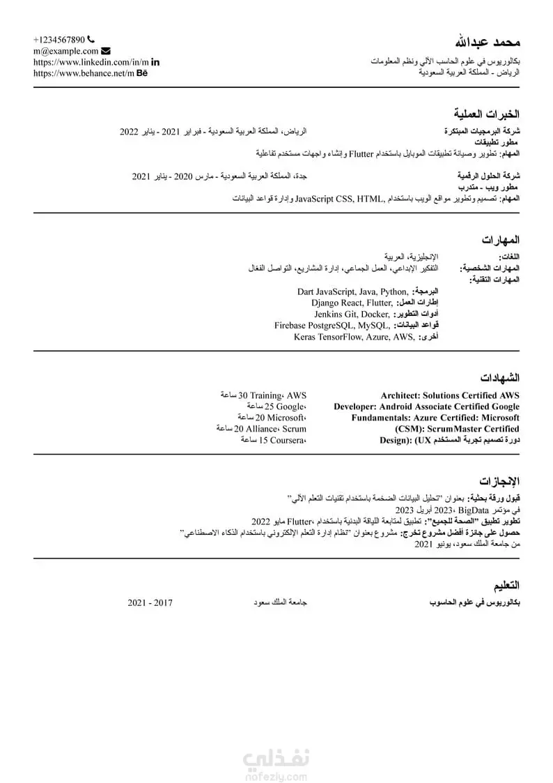 السيرة الذاتية ليست مجرد ورقة تعريفية، بل هي مفتاحك الأول للحصول على الوظيفة. إنها الانعكاس الحقيقي لمهاراتك، وخبراتك، وإنجازاتك، وتشكل الفارق الأكبر في قرار قبولك أو رفضك. اليوم تعتمد معظم الشركات العالمية على أنظمة ATS لفرز السير الذاتية، حيث لا يصل إلى مسؤولي التوظيف سوى السير الذاتية المصممة باحترافية ومتوافقة مع هذه الأنظمة. إذا كنت تبحث عن سيرة ذاتية تُظهر تميزك، وتزيد فرصك في اجتياز فلترة الشركات، فأنت في المكان الصحيح. سأعمل على تصميم سيرة ذاتية احترافية تعكس شخصيتك المهنية، وتجعل سيرتك ملفتة أمام أي مسؤول توظيف. ما الذي ستستلمه 1) سيرة ذاتية احترافية 2) مصممة بالعربية أو الإنجليزية حسب طلبك. 3) ملف بصيغة PDF للطباعة + ملف Word قابل للتعديل. 4) منسق باحترافية لتخطي برامج الفلترة والوصول لمسؤولي التوظيف. 5) مهيأة للإرسال عبر البريد الإلكتروني أو رفعها مباشرة على مواقع التوظيف. 6) إمكانية اختيار نموذج من بين عدة قوالب عصرية واحترافية. 7) تعديلات مفتوحة حتى الوصول للرضا التام.