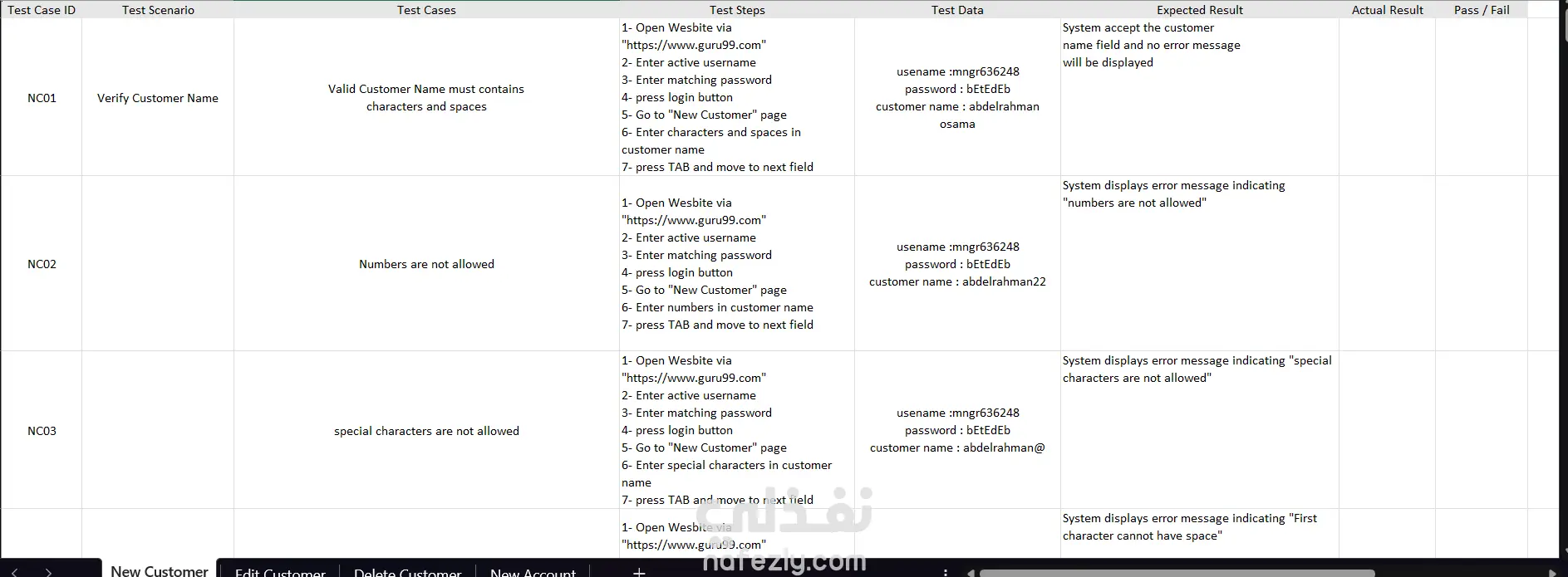اشتغلت على مشروع موقع بنكي إلكتروني كان فيه ميزة جديدة اسمها "New Customer" تسمح للعميل بفتح حساب جديد من خلال الموقع بدون زيارة الفرع. دوري كان تنفيذ اختبار يدوي كامل للتأكد من أن هذه الميزة وباقي خصائص النظام تعمل بكفاءة وأمان. 1️⃣ تحليل المتطلبات (Requirements Analysis) خاصية New Customer: تسجيل بيانات العميل (الاسم – الرقم القومي – رقم الموبايل – البريد الإلكتروني). التحقق من صحة البيانات (Validation). رفع المستندات المطلوبة (صورة بطاقة الهوية – إثبات العنوان). إرسال رمز تحقق (OTP) على الموبايل. إنشاء الحساب وربطه بخدمات البنك الأساسية. باقي خصائص الموقع مثل: تسجيل الدخول، عرض الرصيد، التحويلات البنكية، دفع الفواتير. 2️⃣ تصميم حالات الاختبار (Test Cases Design) كتبت Test Cases تغطي جميع السيناريوهات: إدخال بيانات صحيحة → يجب إنشاء الحساب بنجاح. إدخال بريد إلكتروني غير صالح → يظهر تنبيه بالخطأ. رفع مستندات بصيغة غير مدعومة → النظام يرفض العملية برسالة واضحة. إدخال OTP صحيح → الحساب يتم تفعيله. إدخال OTP خاطئ أكثر من مرة → النظام يقفل المحاولة مؤقتًا. تجربة تسجيل الدخول لأول مرة بعد إنشاء الحساب → يتطلب تغيير كلمة المرور. وبالنسبة للخصائص الأخرى: التحقق أن العميل يقدر يشوف الرصيد فورًا بعد أول إيداع. التأكد أن التحويل الداخلي يصل في نفس اللحظة. التأكد من أن دفع فاتورة يرسل إيصال إلكتروني للعميل. 3️⃣ تنفيذ الاختبارات (Execution) اختبرت النظام يدويًا على متصفحات مختلفة (Chrome, Firefox, Safari, Edge). جربت الميزة على موبايل ولابتوب للتأكد من أن التصميم متجاوب. سجلت نتيجة كل Test Case (Pass / Fail). 4️⃣ التقارير (Bug Reporting & Documentation) أعددت تقرير تفصيلي يحتوي على: الأخطاء المكتشفة مثل: (OTP delay – خطأ في عرض رسالة معينة – مشكلة توافق في متصفح Safari). خطوات إعادة إنتاج كل مشكلة. صور (Screenshots) مرفقة. أولوية (High/Medium/Low). 5️⃣ إعادة الاختبار (Re-testing & Regression) بعد إصلاح الأخطاء من فريق التطوير، نفذت اختبارات تراجعية للتأكد أن التعديلات لم تؤثر على باقي خصائص النظام. 📌 النتيجة: ميزة New Customer عملت بشكل سلس بعد الإصلاحات، وباقي خصائص الموقع البنكي كانت مستقرة. تم إطلاق النظام للعملاء بنجاح، مع تجربة آمنة وسهلة الاستخدام.