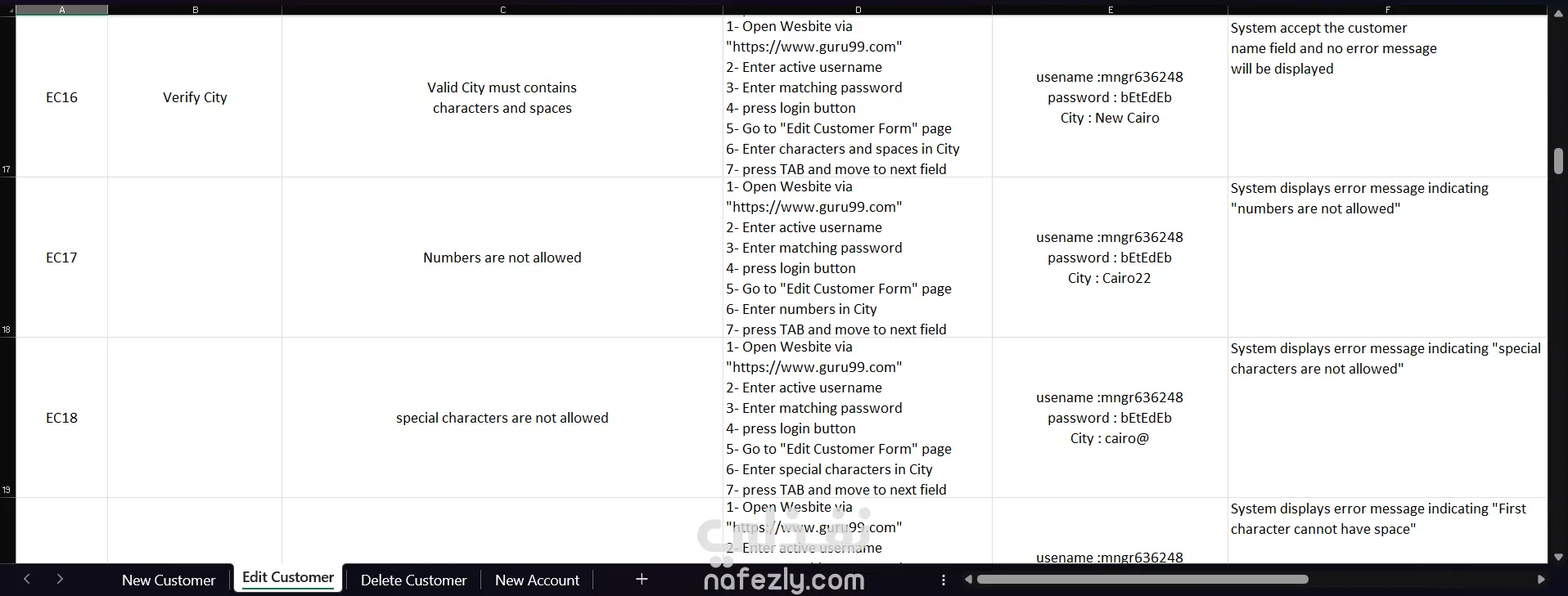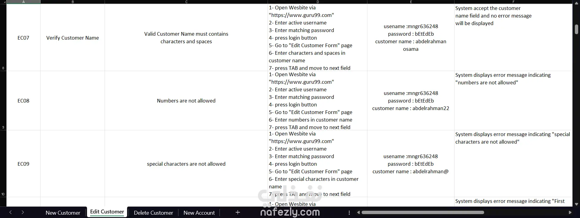 ضمن مشروع موقع بنكي إلكتروني، كان فيه ميزة أساسية اسمها "Edit Customer"، والهدف منها أن العميل يقدر يعدل بياناته الشخصية بسهولة وأمان من خلال لوحة التحكم. دوري كان القيام باختبار يدوي شامل للتأكد من أن الخاصية تعمل بكفاءة ودون أخطاء. 1️⃣ تحليل المتطلبات (Requirements Analysis) الميزة كان مطلوب منها: إتاحة تعديل البيانات الأساسية (الاسم، البريد الإلكتروني، رقم الهاتف، العنوان). التحقق من صحة البيانات المدخلة (Validations). إرسال OTP على الموبايل عند تعديل البيانات الحساسة (رقم الهاتف / البريد الإلكتروني). حفظ التغييرات في قاعدة البيانات بشكل آمن. ظهور إشعار (Notification) للعميل بأن التعديل تم بنجاح. 2️⃣ تصميم حالات الاختبار (Test Cases Design) كتبت Test Cases لتغطية السيناريوهات المختلفة، مثل: تعديل البريد الإلكتروني الصحيح → يتم الحفظ ويُرسل OTP للتأكيد. إدخال بريد إلكتروني غير صالح (بدون @ مثلاً) → يظهر خطأ "Invalid Email". تعديل رقم الموبايل إلى رقم جديد صحيح → النظام يطلب OTP للتأكيد. إدخال OTP خاطئ أكثر من 3 مرات → النظام يمنع العملية مؤقتًا. تعديل العنوان فقط → يتم الحفظ مباشرة بدون OTP. التحقق أن البيانات الجديدة تظهر في الحساب بعد الحفظ. 3️⃣ تنفيذ الاختبارات (Execution) نفذت الاختبارات يدويًا على أكثر من متصفح (Chrome – Firefox – Edge). جربت على موبايل ولابتوب للتأكد أن خاصية Edit Customer متجاوبة مع الشاشات المختلفة. سجلت حالة كل Test Case (Pass / Fail). 4️⃣ إعداد التقارير (Bug Reporting & Documentation) أعددت تقرير يحتوي على: بعض الأخطاء اللي ظهرت، مثل: رسالة خطأ غير واضحة عند إدخال OTP خاطئ. مشكلة حفظ البيانات ببطء عند تعديل أكثر من حقل معًا. أضفت صور (Screenshots) وخطوات إعادة إنتاج الخطأ. رتبت الأولويات (High للـ OTP Issue – Medium لبطء الحفظ). 5️⃣ إعادة الاختبار (Re-testing & Regression) بعد التعديلات من فريق التطوير، عملت إعادة اختبار للتأكد أن المشاكل اتحلت، وكمان عملت Regression Testing على باقي خصائص الحساب عشان أتأكد إن مفيش حاجة اتأثرت. 📌 النتيجة: ميزة Edit Customer أصبحت تعمل بشكل آمن وسلس، مع تجربة استخدام سهلة للعميل. النظام أطلق بنجاح بدون مشاكل حرجة.